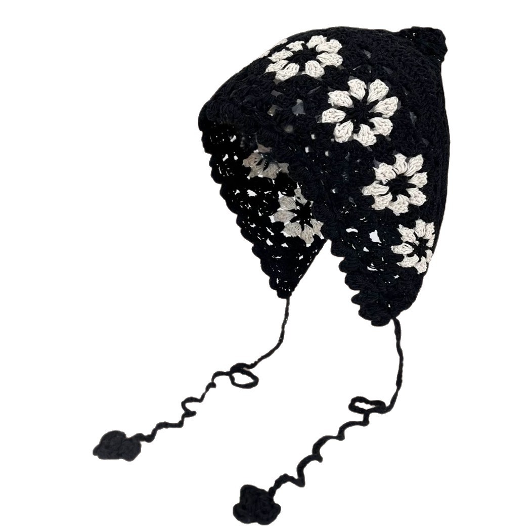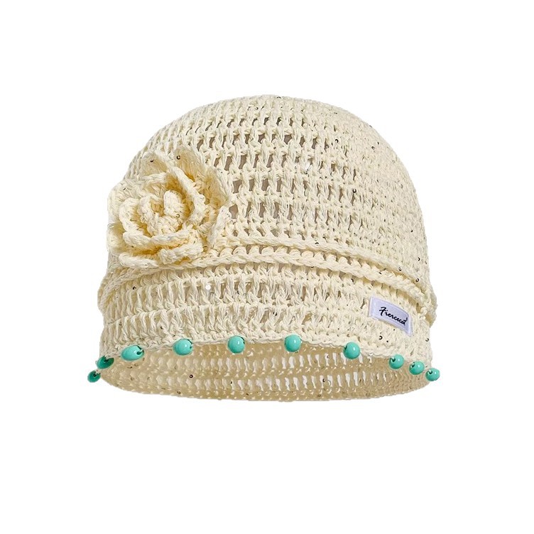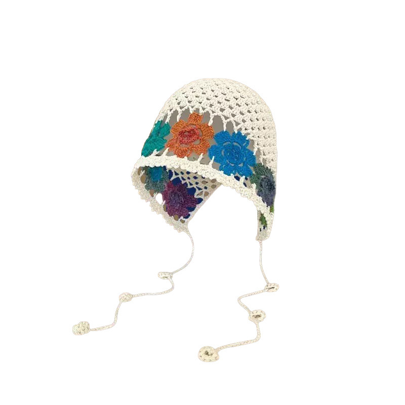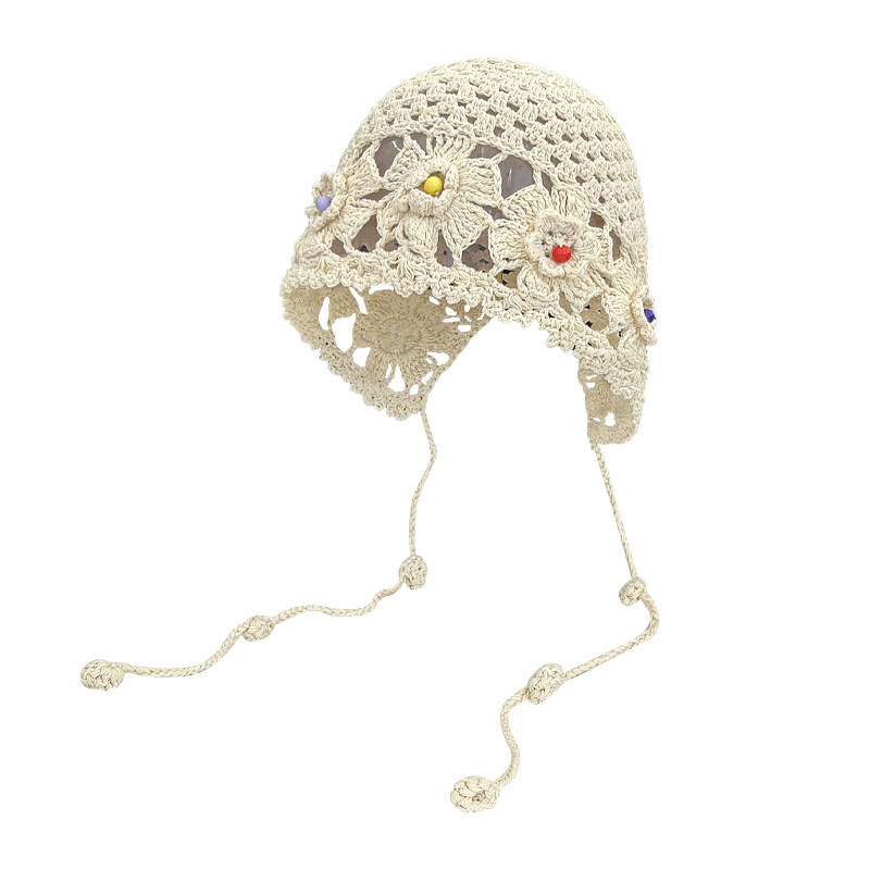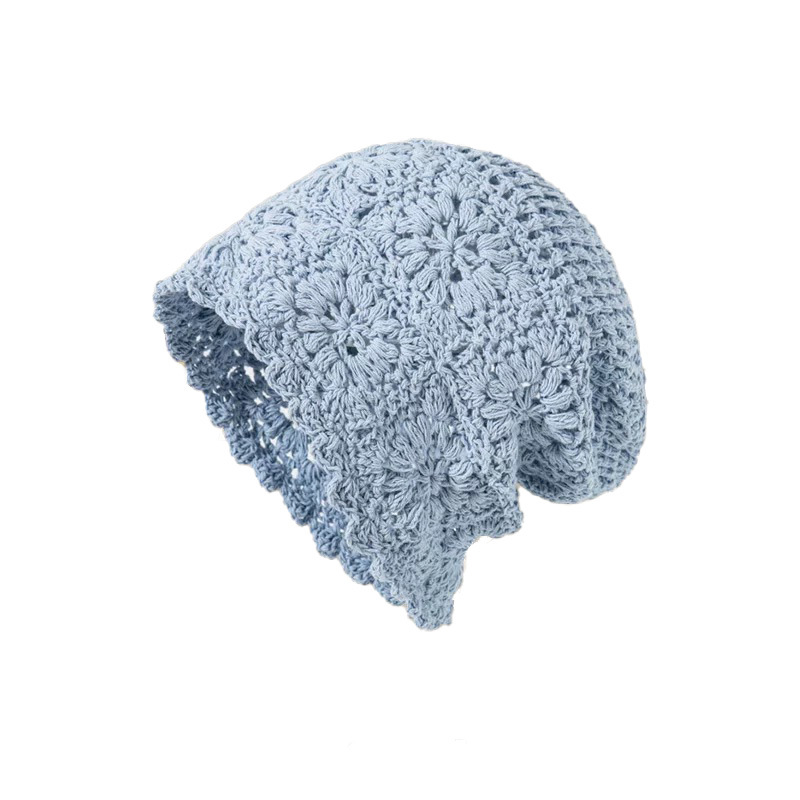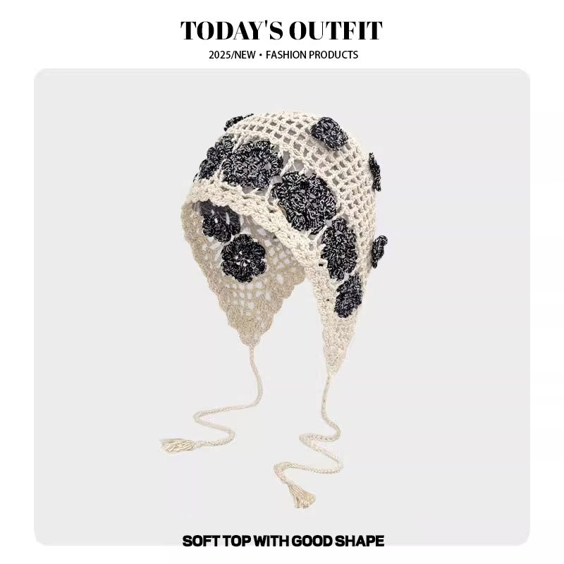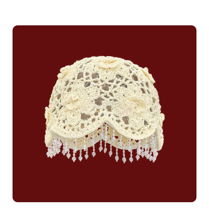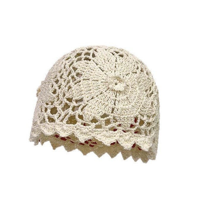 민족 스타일 크로 셰 뜨개질 모직 모자 손으로 짠 Baotou 모자 여성 봄, 여름 얇은 중공 복고풍 문학 니트 모자