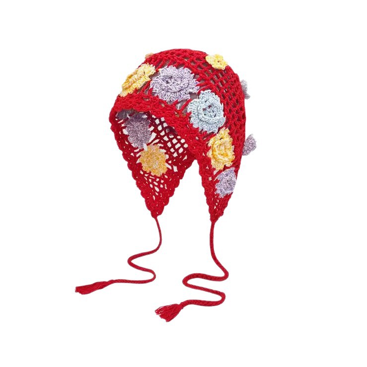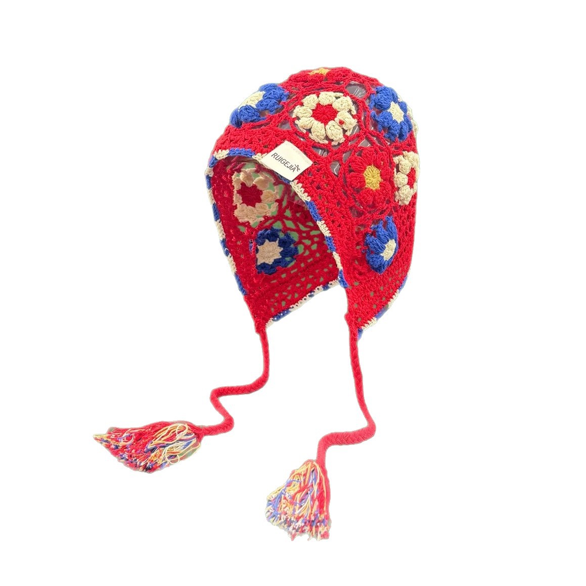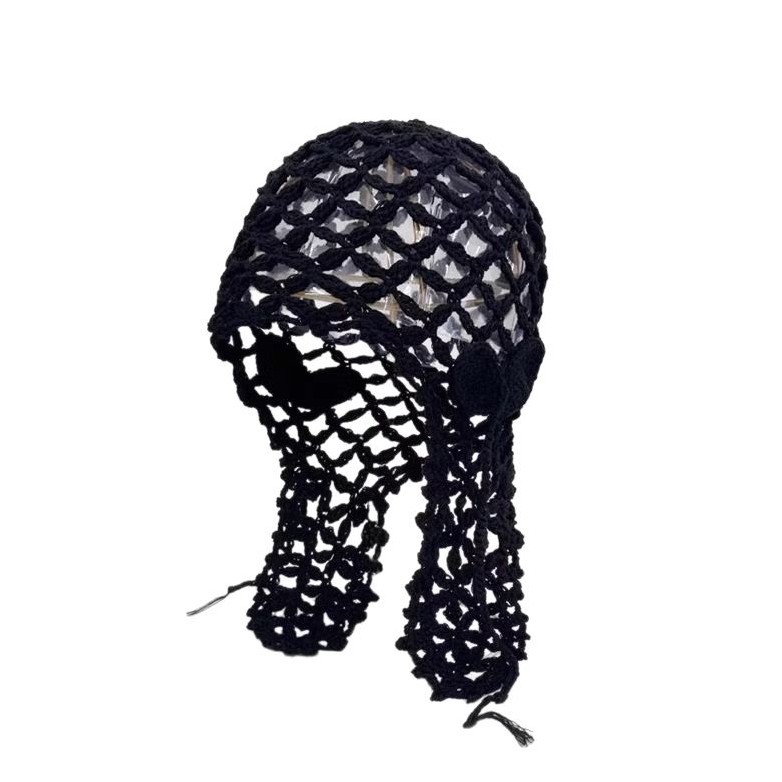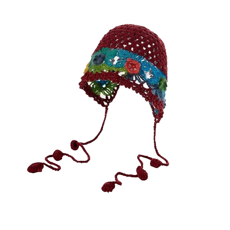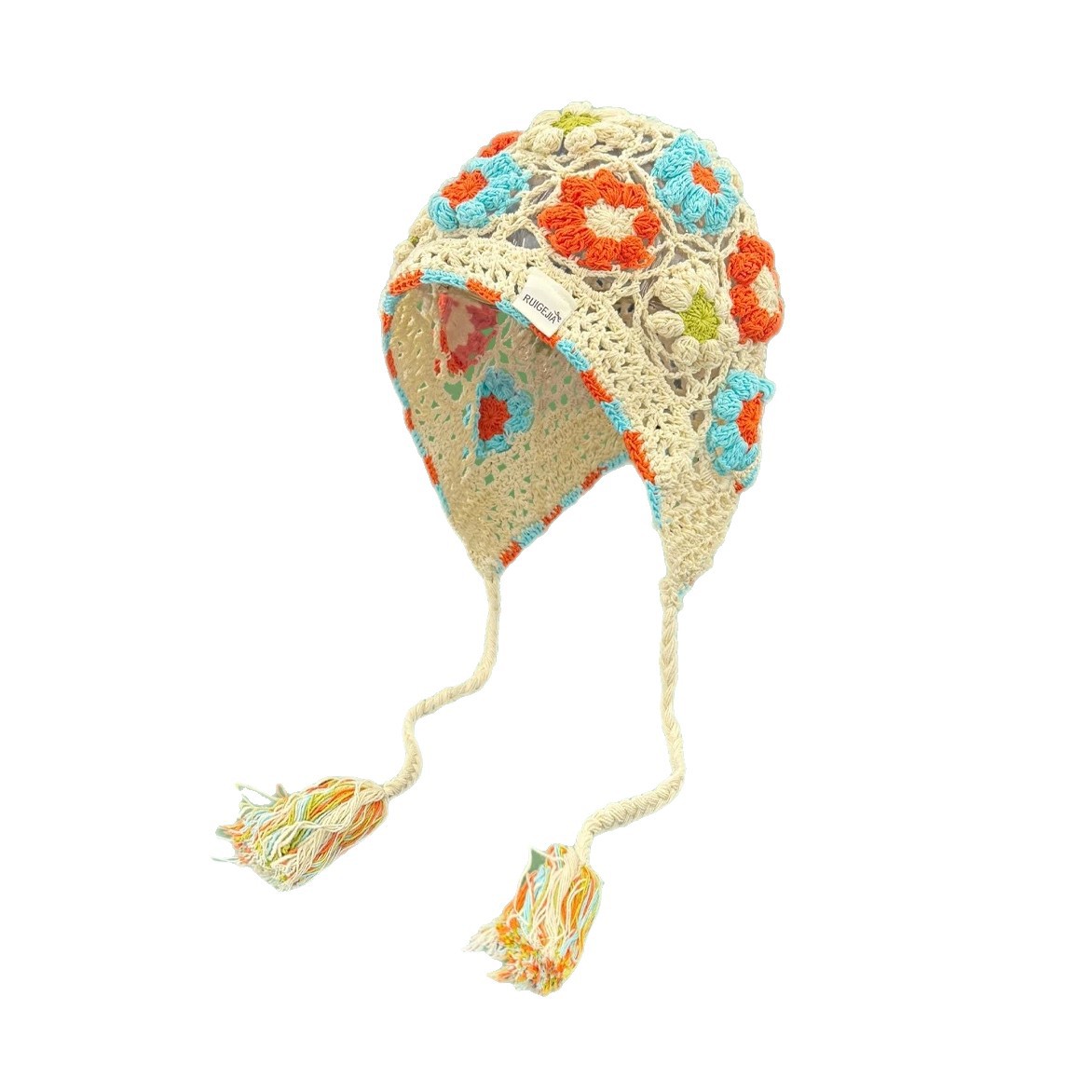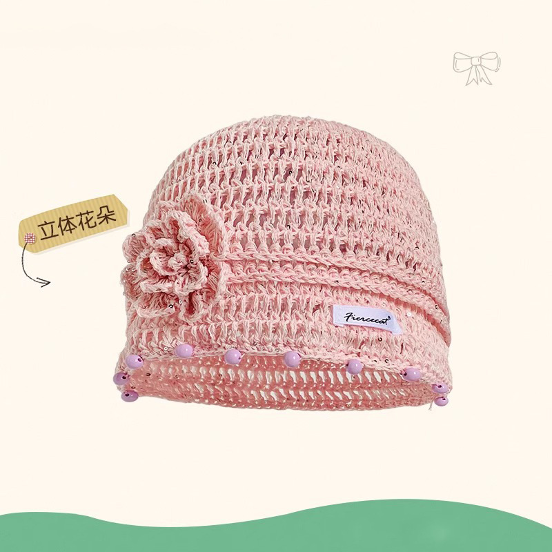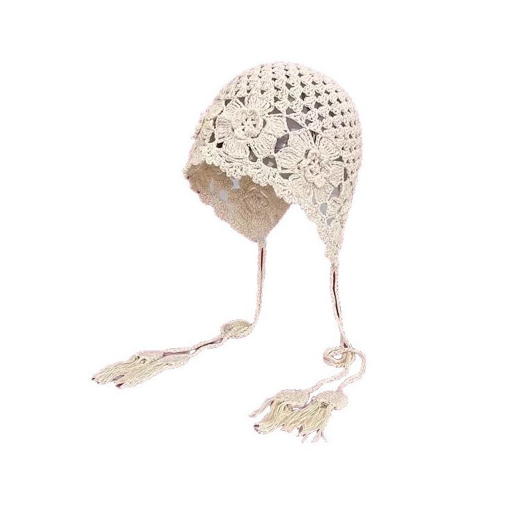 민족 스타일 크로 셰 뜨개질 모직 모자 손으로 짠 Baotou 모자 여성 봄, 여름 얇은 중공 복고풍 문학 니트 모자