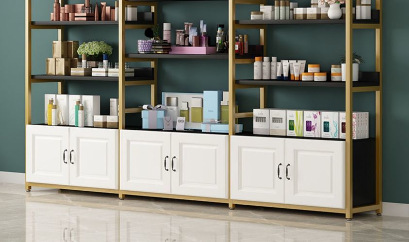 선반 디스플레이 랙 스토리지 랙 슈퍼마켓 모성 및 베이비 스토어 다층 디스플레이 랙 뷰티 살롱 화장품 제품 디스플레이 캐비닛 컨테이너스토어 가기