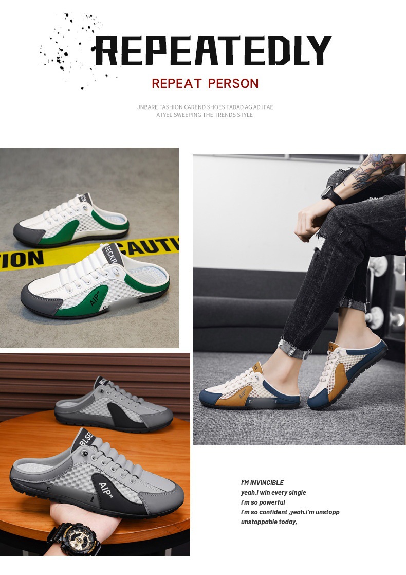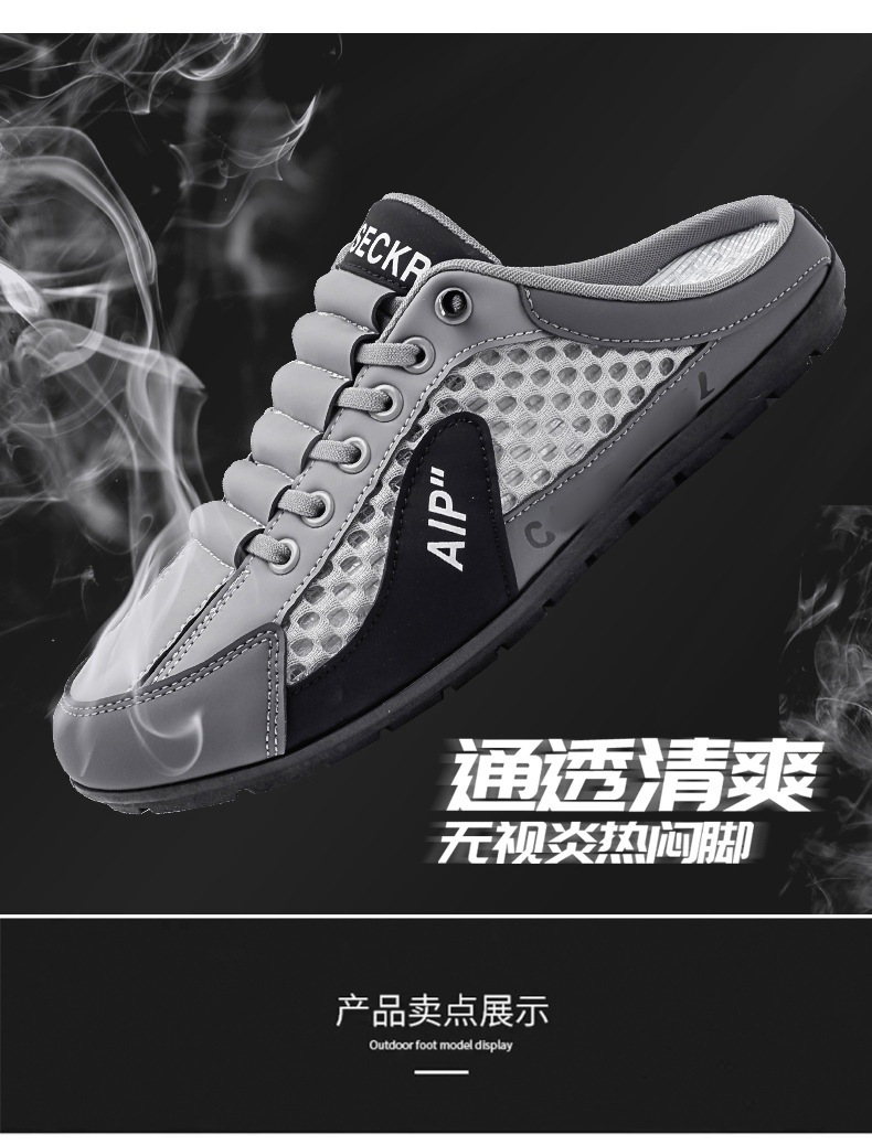 국경 대형 남성 신발 여름 중공 메쉬 캐주얼 신발 Baotou 하프 슬리퍼 남성 게으른 운전 샌들스토어 가기