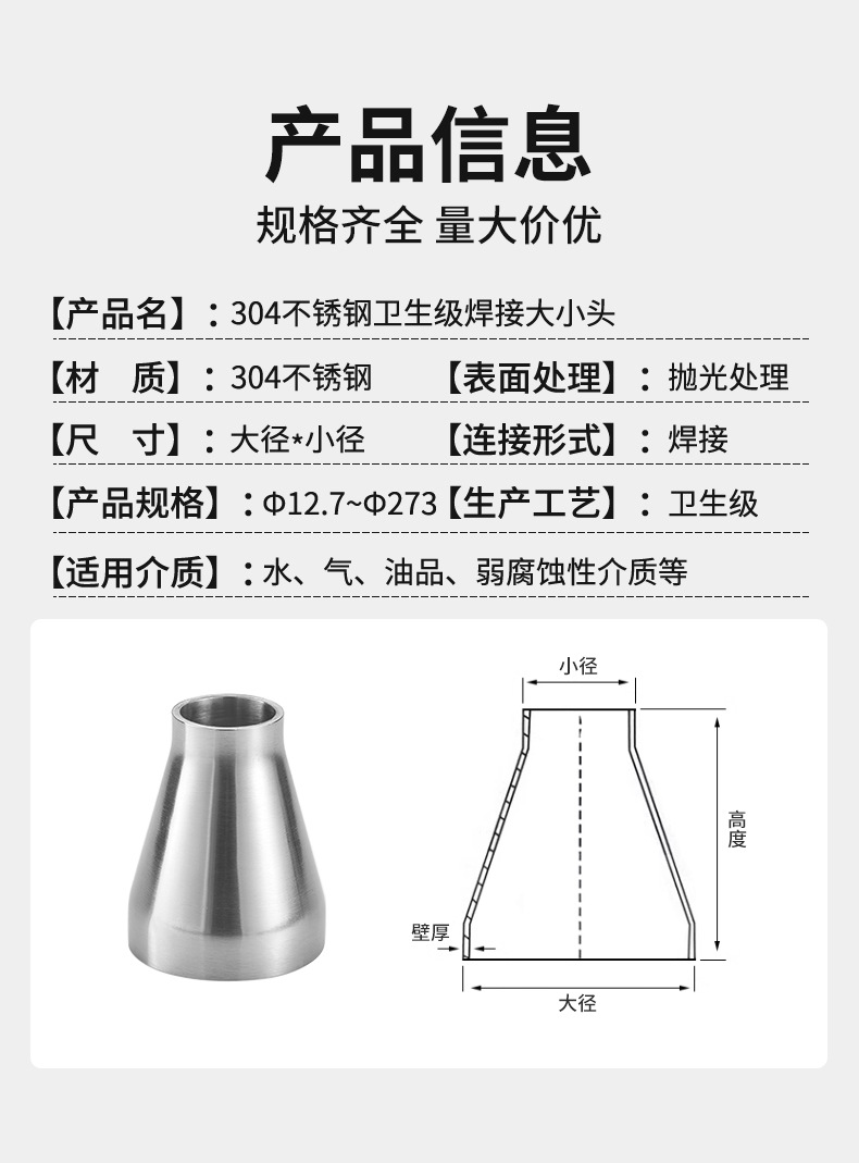 304 스테인레스 스틸 위생 용접 감속기 감속기 공동 동심 감속기 감속기 파이프스토어 가기