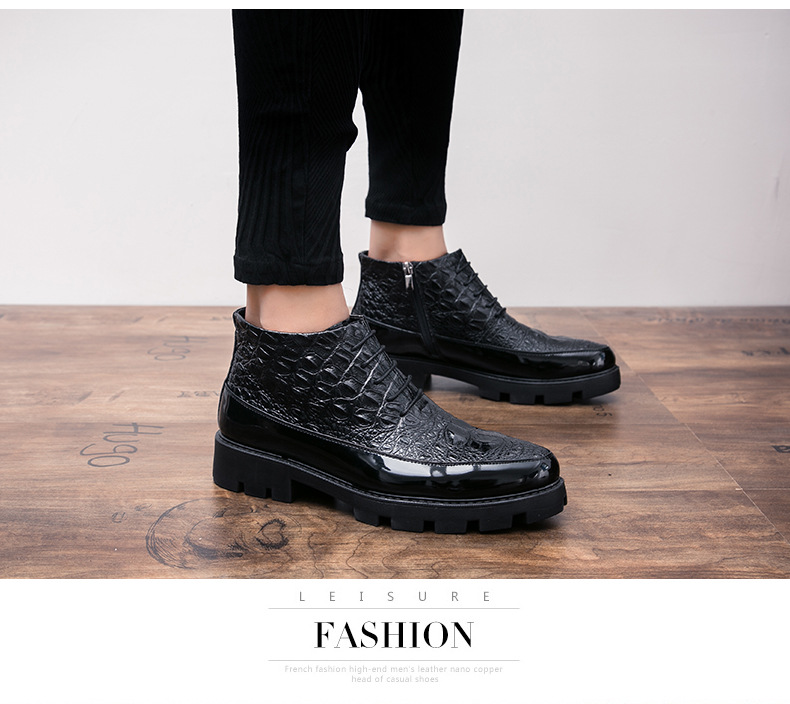 국경 간 발목 부츠 남성 가을 영국 마틴 부츠 남성 패션 지퍼 가죽 부츠 캐주얼 하이 탑 가죽 신발 유행 부츠스토어 가기