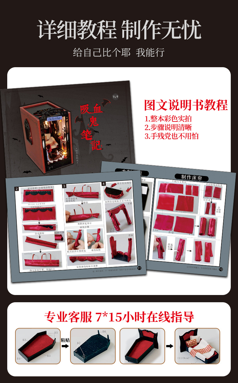 1.产品包装内附有详细的制作说明书。制作前可以先准备一套辅助工具,如剪刀、镊子、尺子用来量尺寸等工具。
