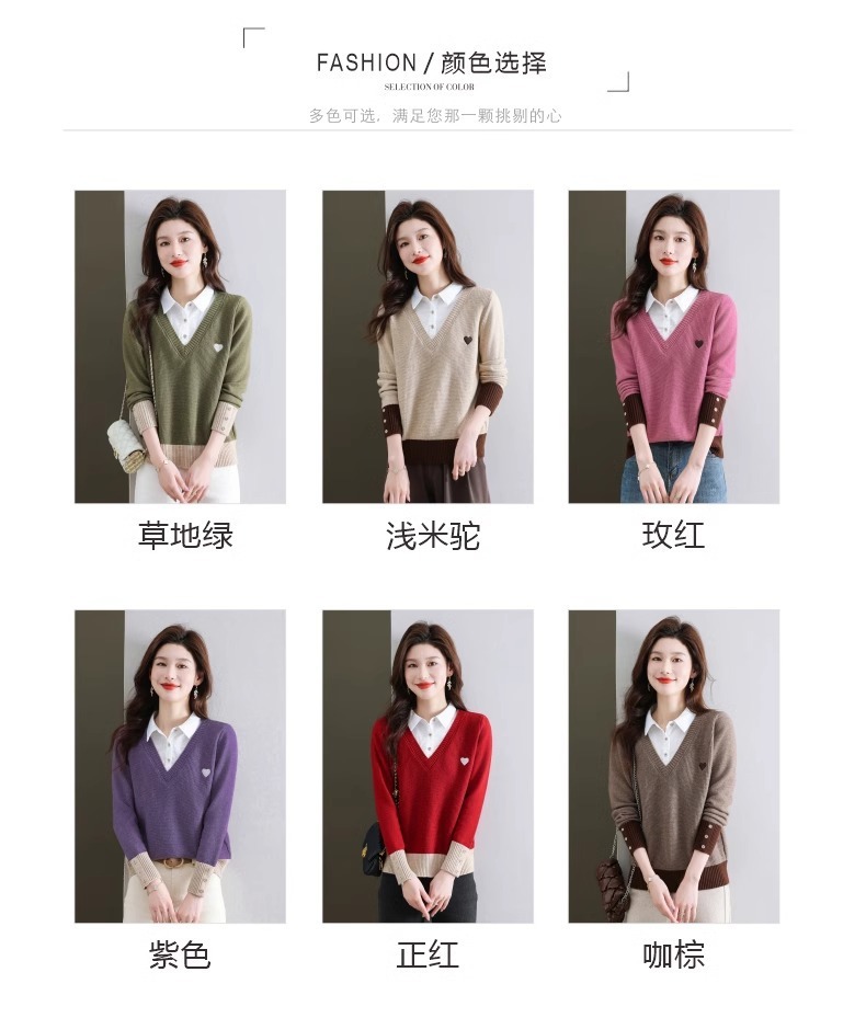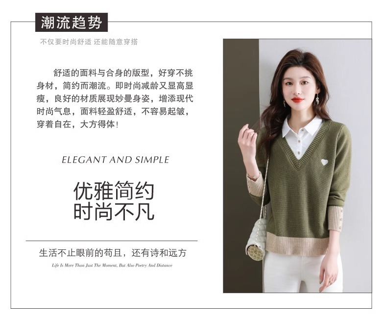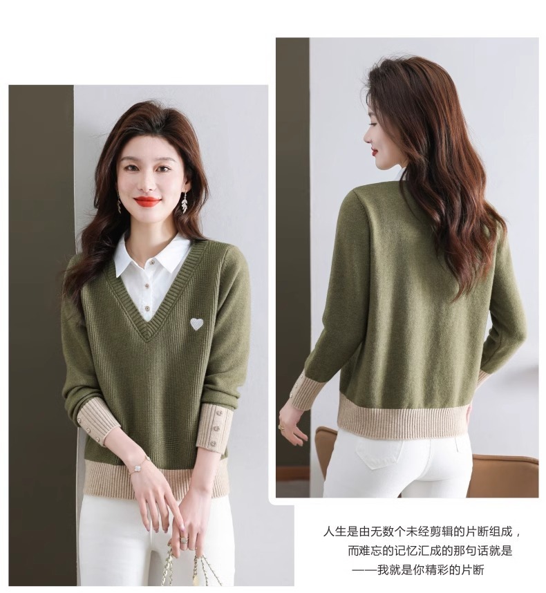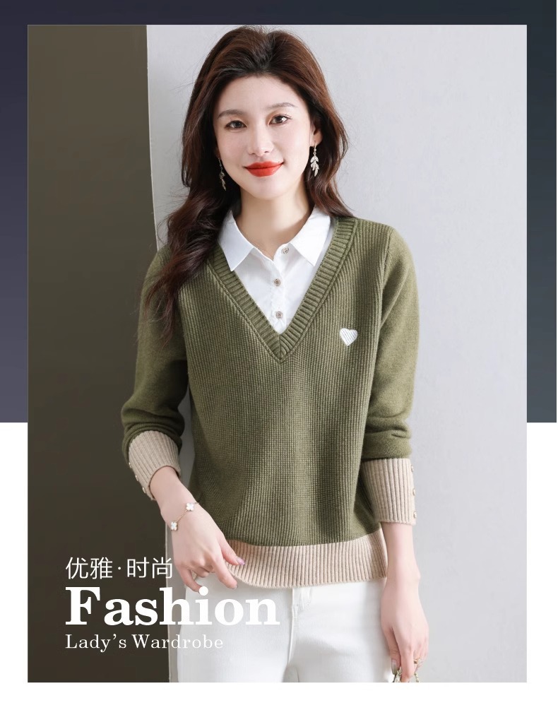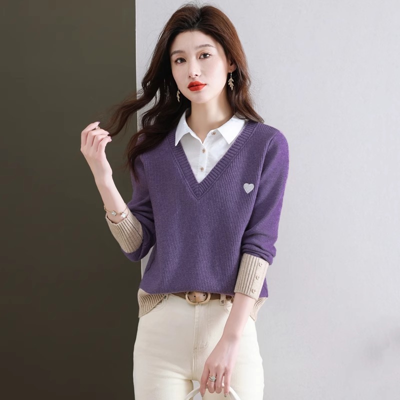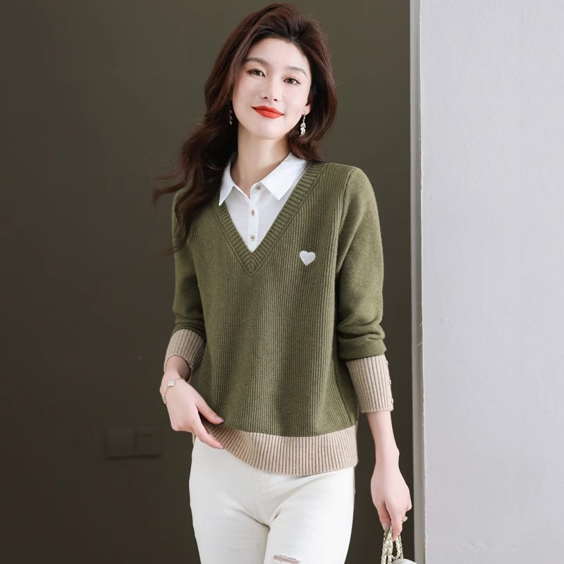 셔츠 칼라 가짜 투피스 스웨터 여성의 봄 2025 새로운 두꺼운 터틀넥 폭발 스타일 니트 베이스 셔츠 탑스토어 가기