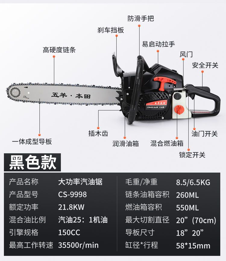 • 수입 체인 1개 + 선물 가방이 포함된 2행정 고급 블랙 모델