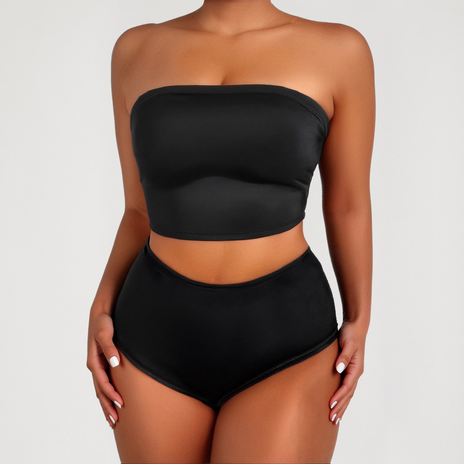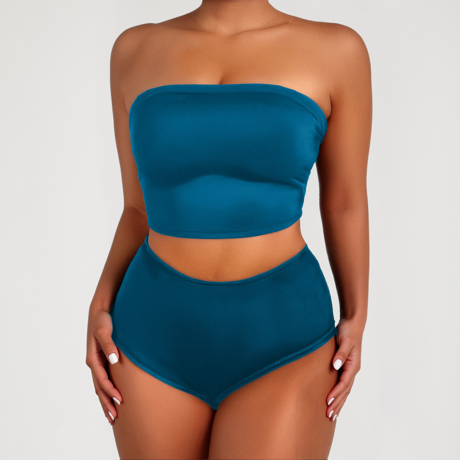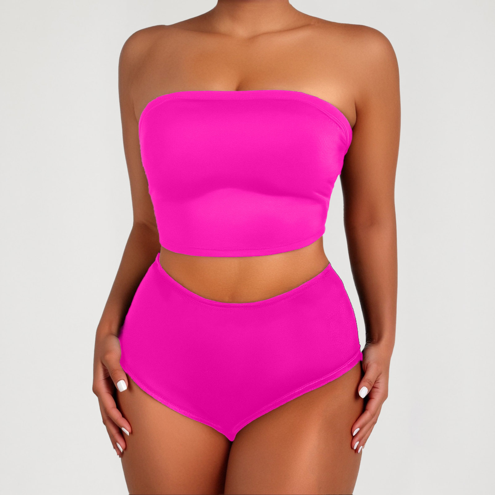 2025 새로운 유럽과 미국의 비키니 스플릿 스트랩리스 하이 웨이스트 투피스 수영복