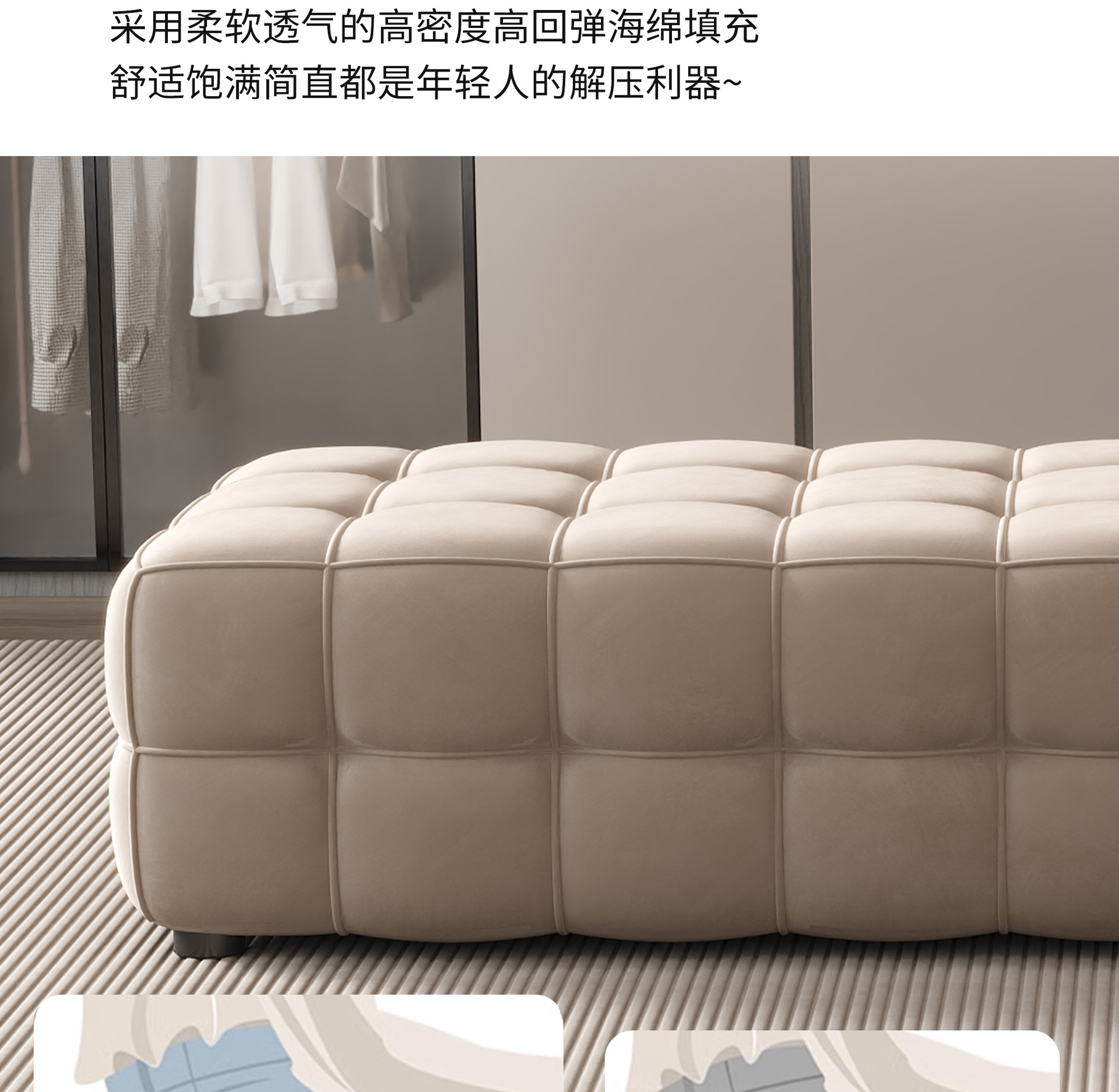 이탈리아 빛 고급 양털 소파 벤치 침실 침대 끝 의자 거실 발 부두 의류 매장 망토 신발 변경 의자스토어 가기