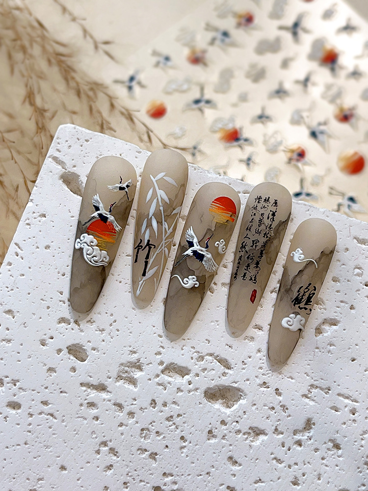 YITU 개미 그림 양각 크레인 태양 만화 네일 아트 스티커 간단한 바람 귀여운 만화 장식 스티커 YT4079스토어 가기