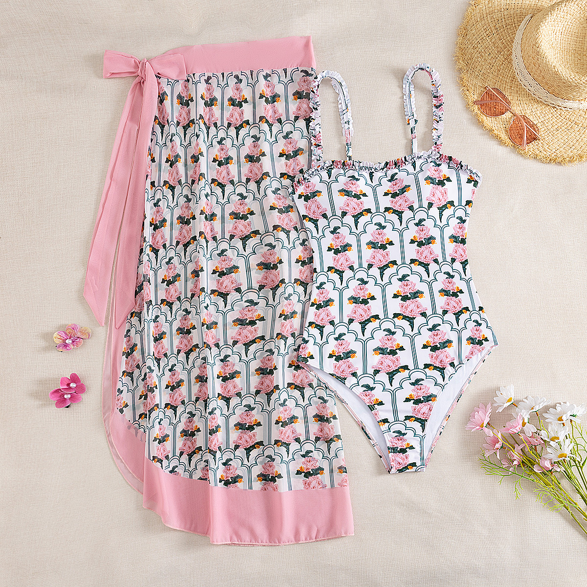 2025 새로운 스트랩리스 슬링 원피스 수영복 하프 길이 메쉬 스커트 인쇄 2 피스 AliExpress 대외 무역