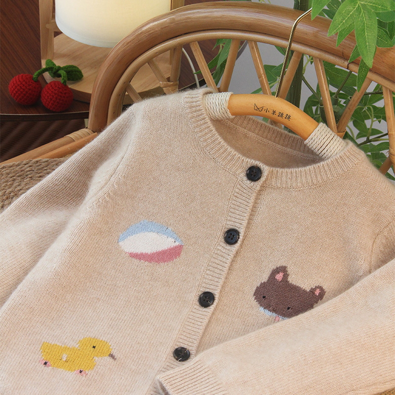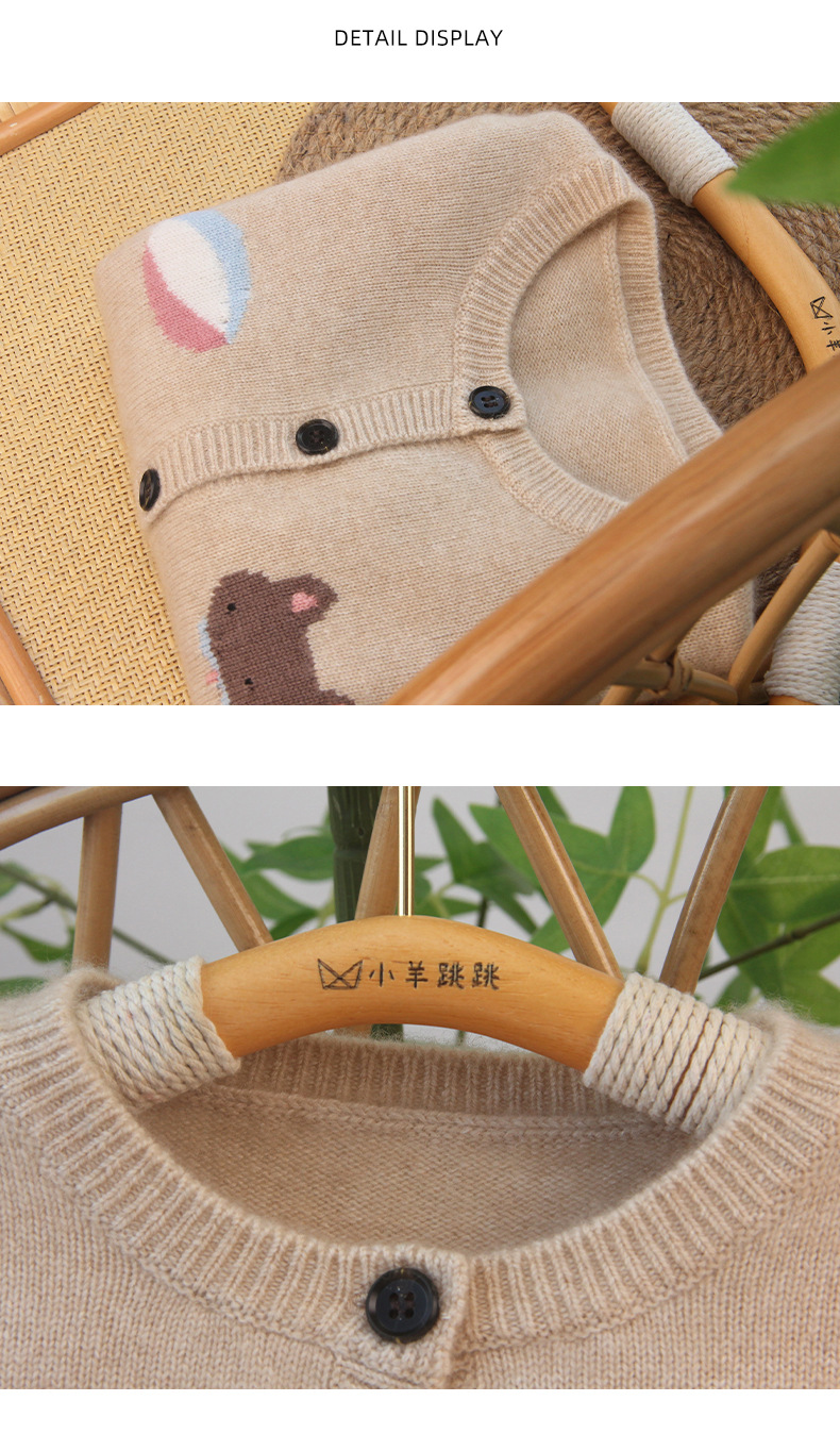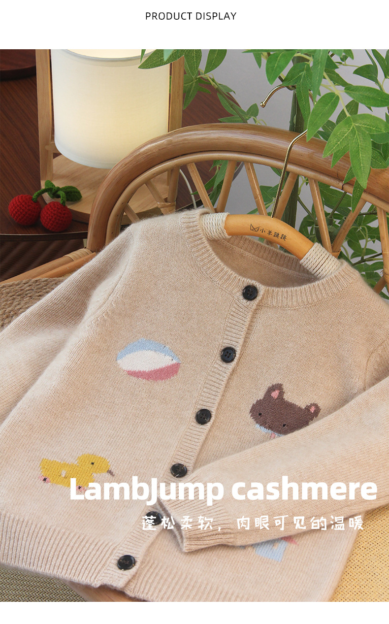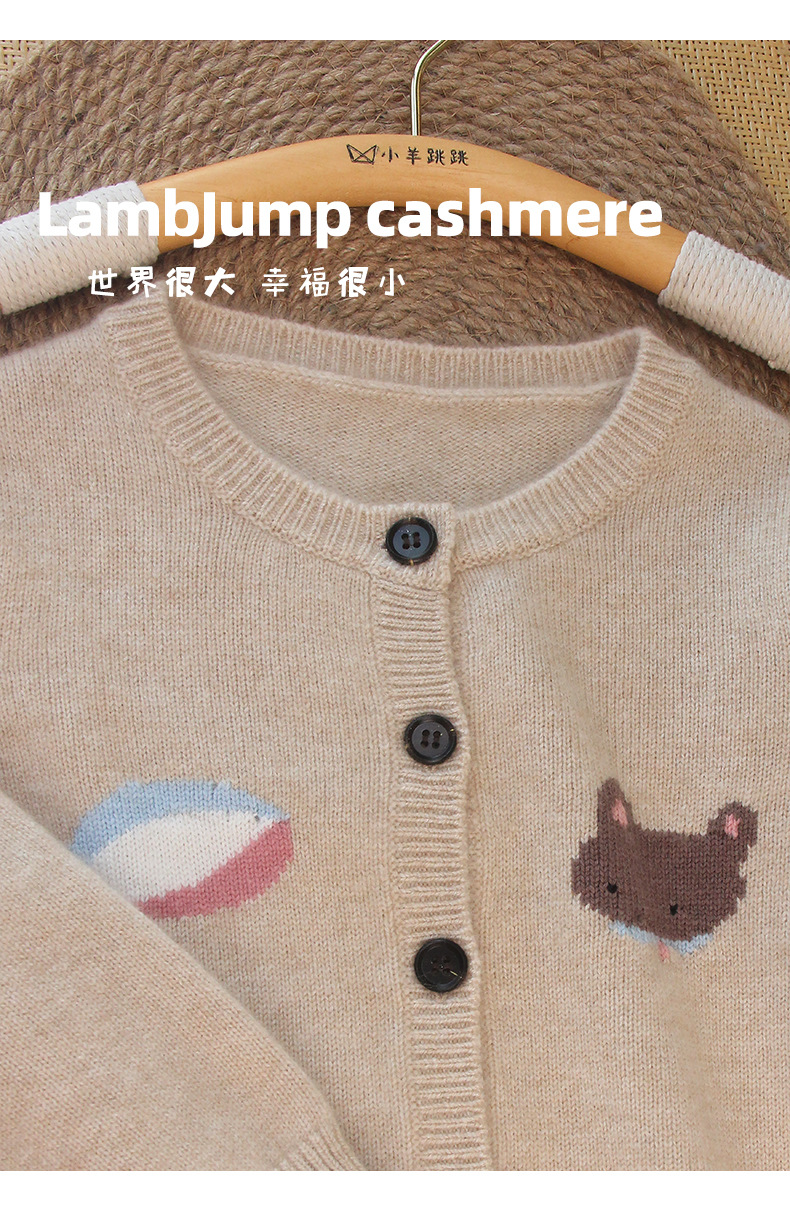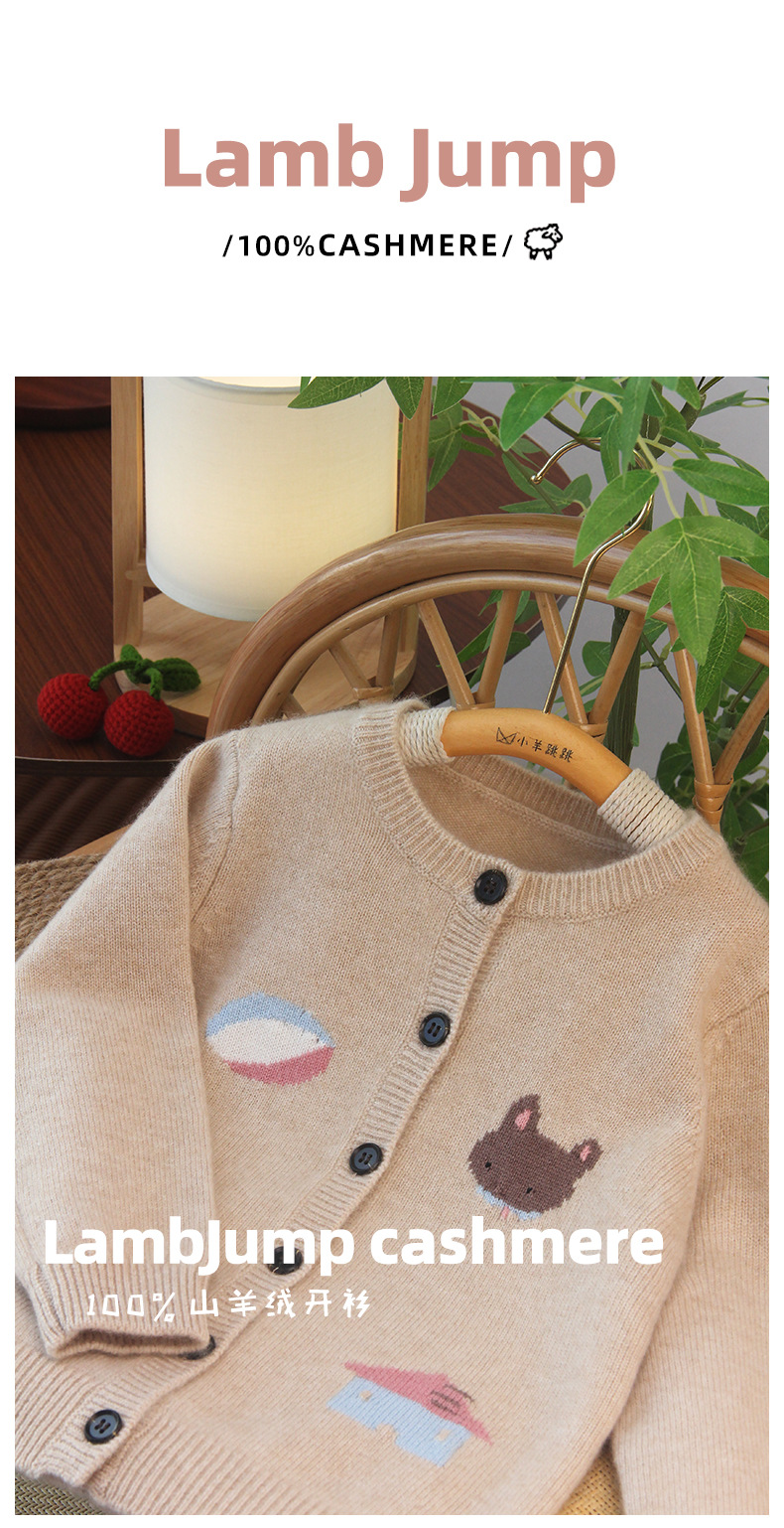 어린 양 점프 새로운 어린이 캐시미어 스웨터 아기 소녀 100% 캐시미어 캐주얼 니트웨어 만화 살구색 카디건스토어 가기