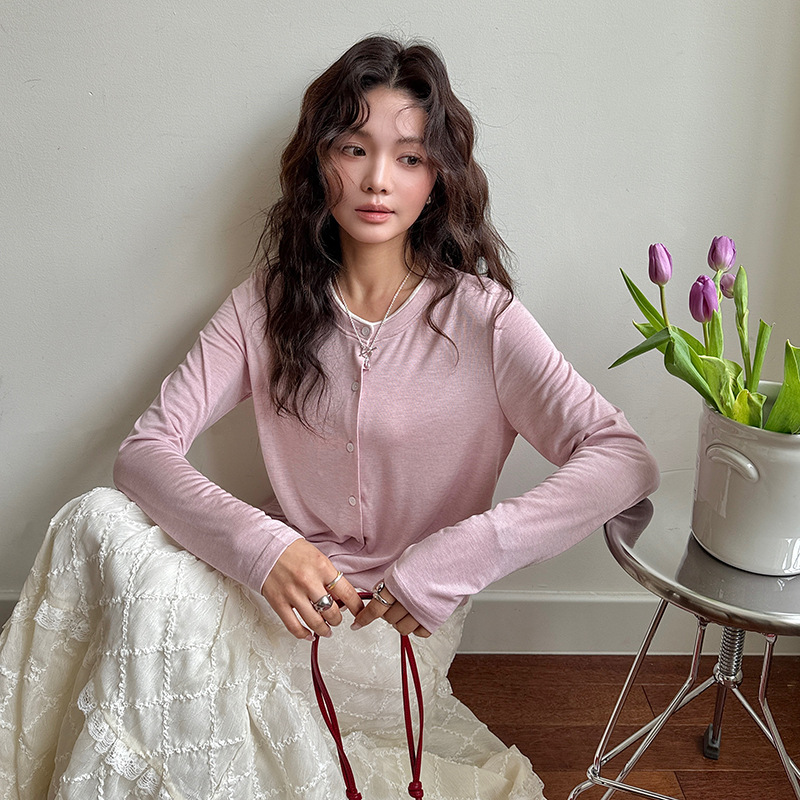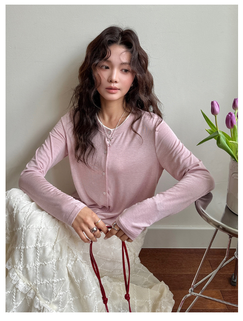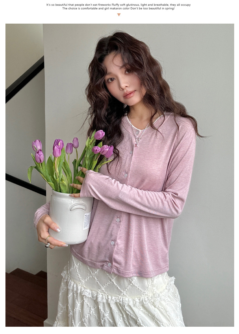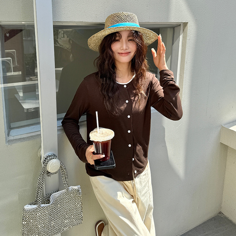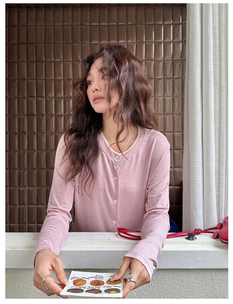 모리시마 텐셀베이스 셔츠 여성용 봄과 여름 2025 새로운 버튼 카디건 슬림 핏 긴팔 탑 니트 스웨터