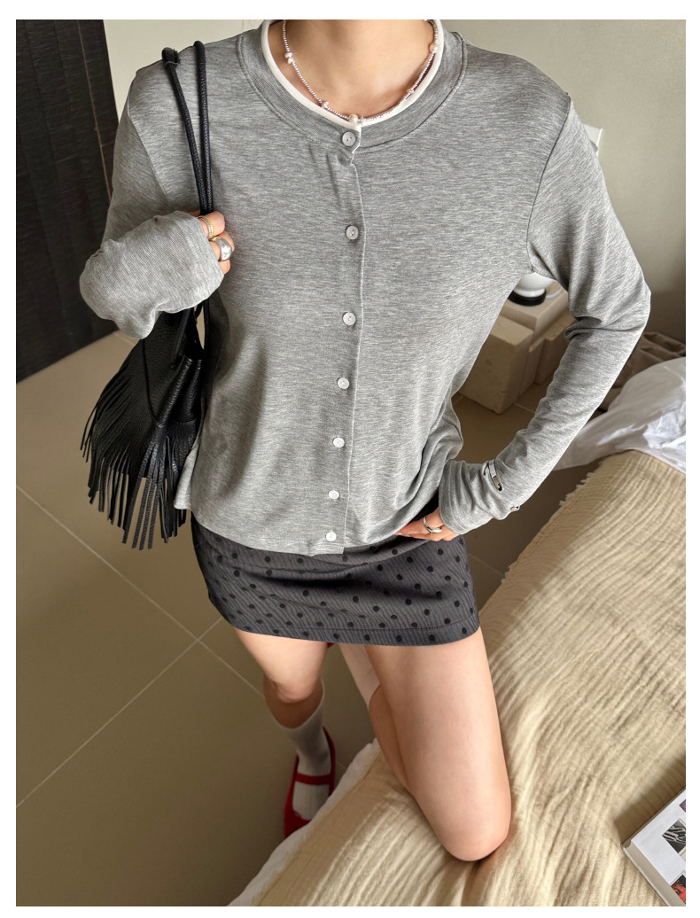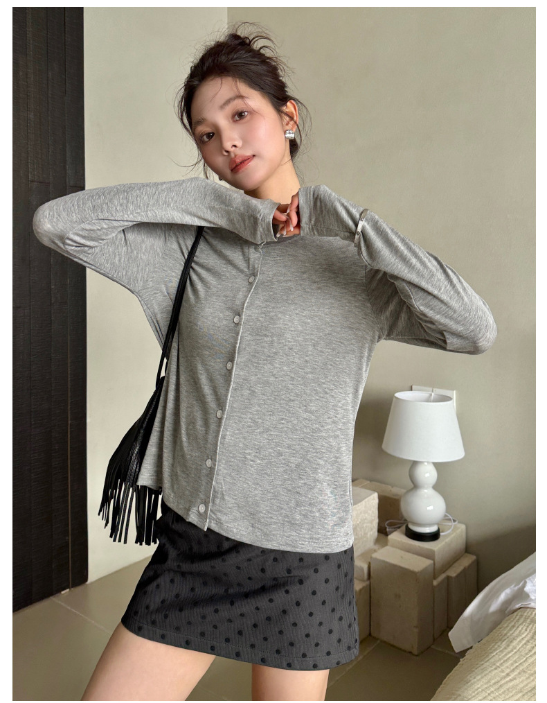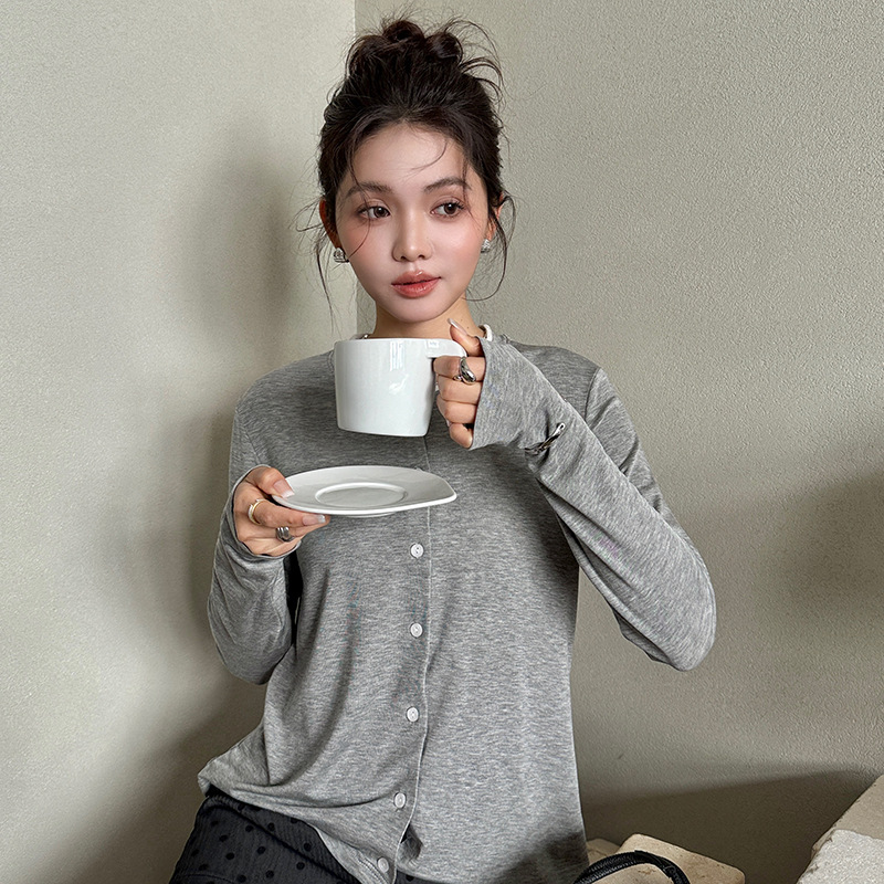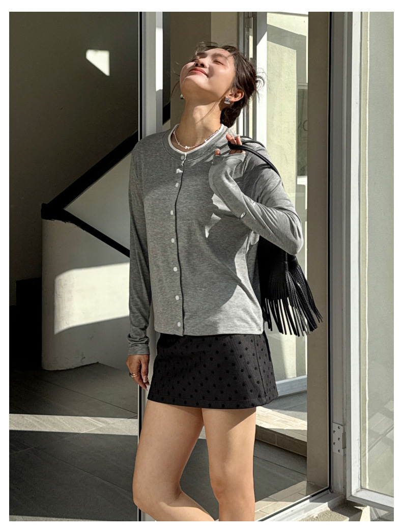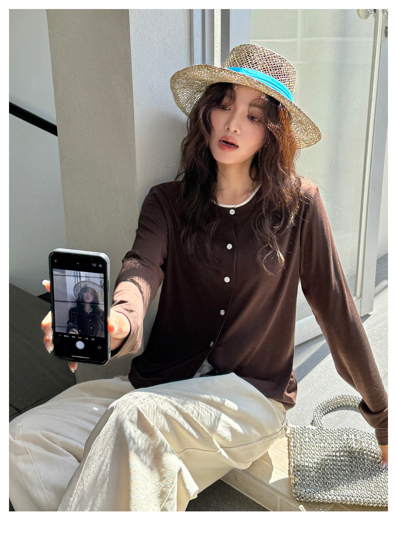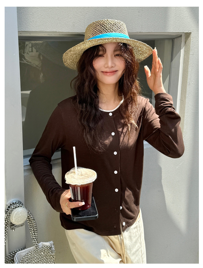 모리시마 텐셀베이스 셔츠 여성용 봄과 여름 2025 새로운 버튼 카디건 슬림 핏 긴팔 탑 니트 스웨터