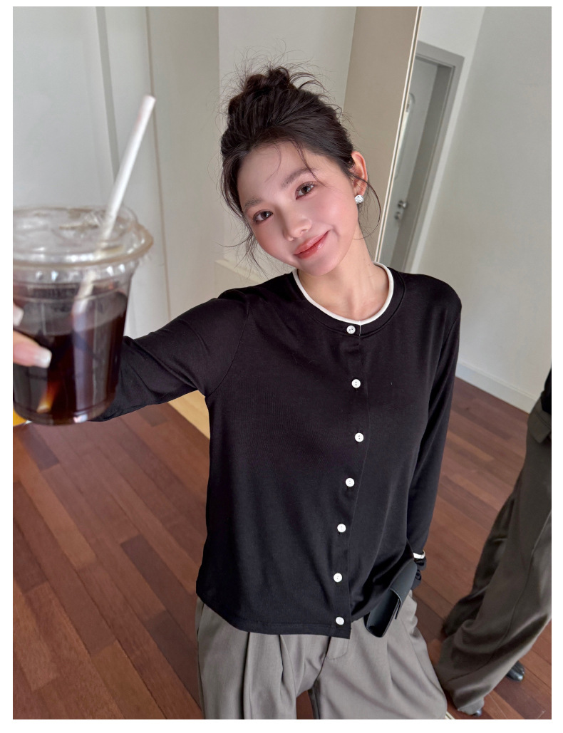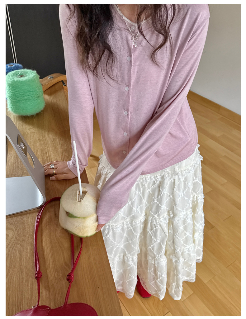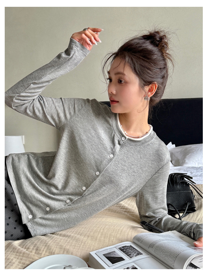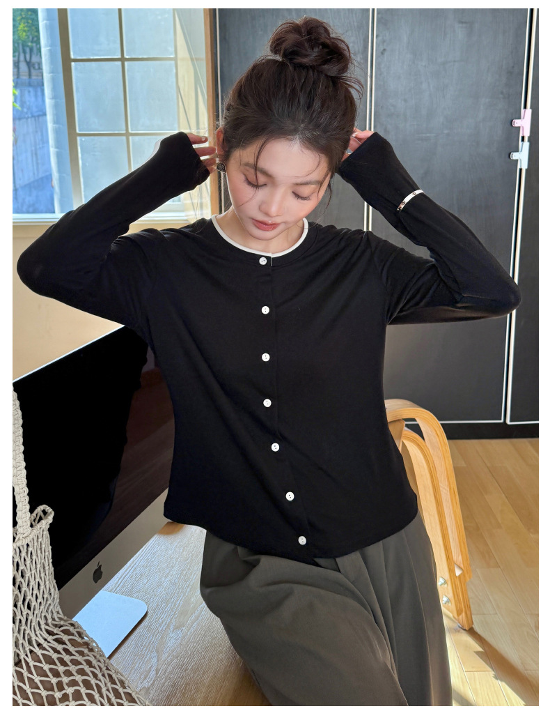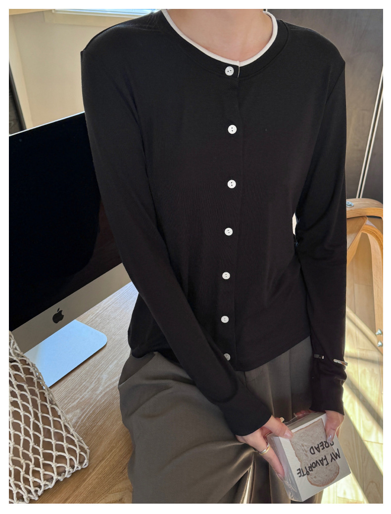 모리시마 텐셀베이스 셔츠 여성용 봄과 여름 2025 새로운 버튼 카디건 슬림 핏 긴팔 탑 니트 스웨터
