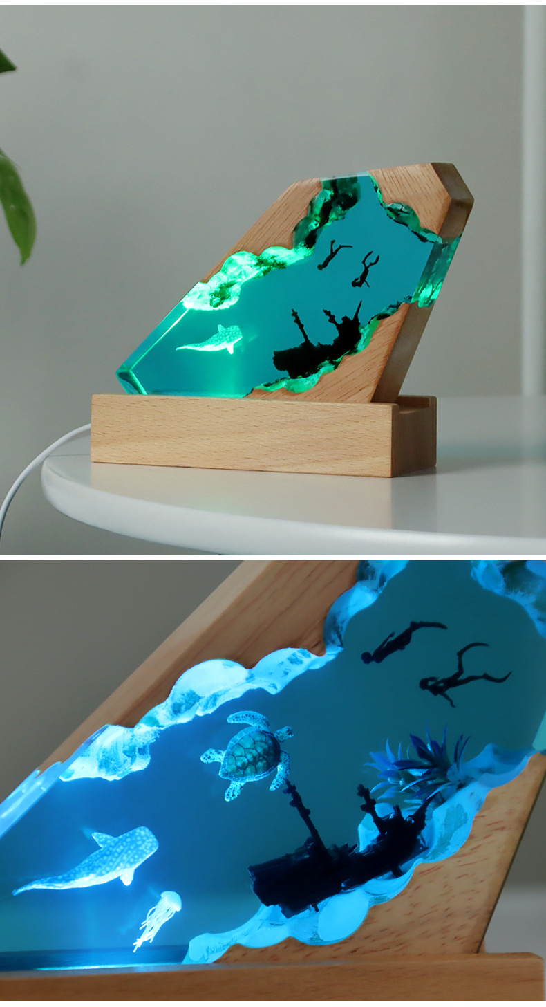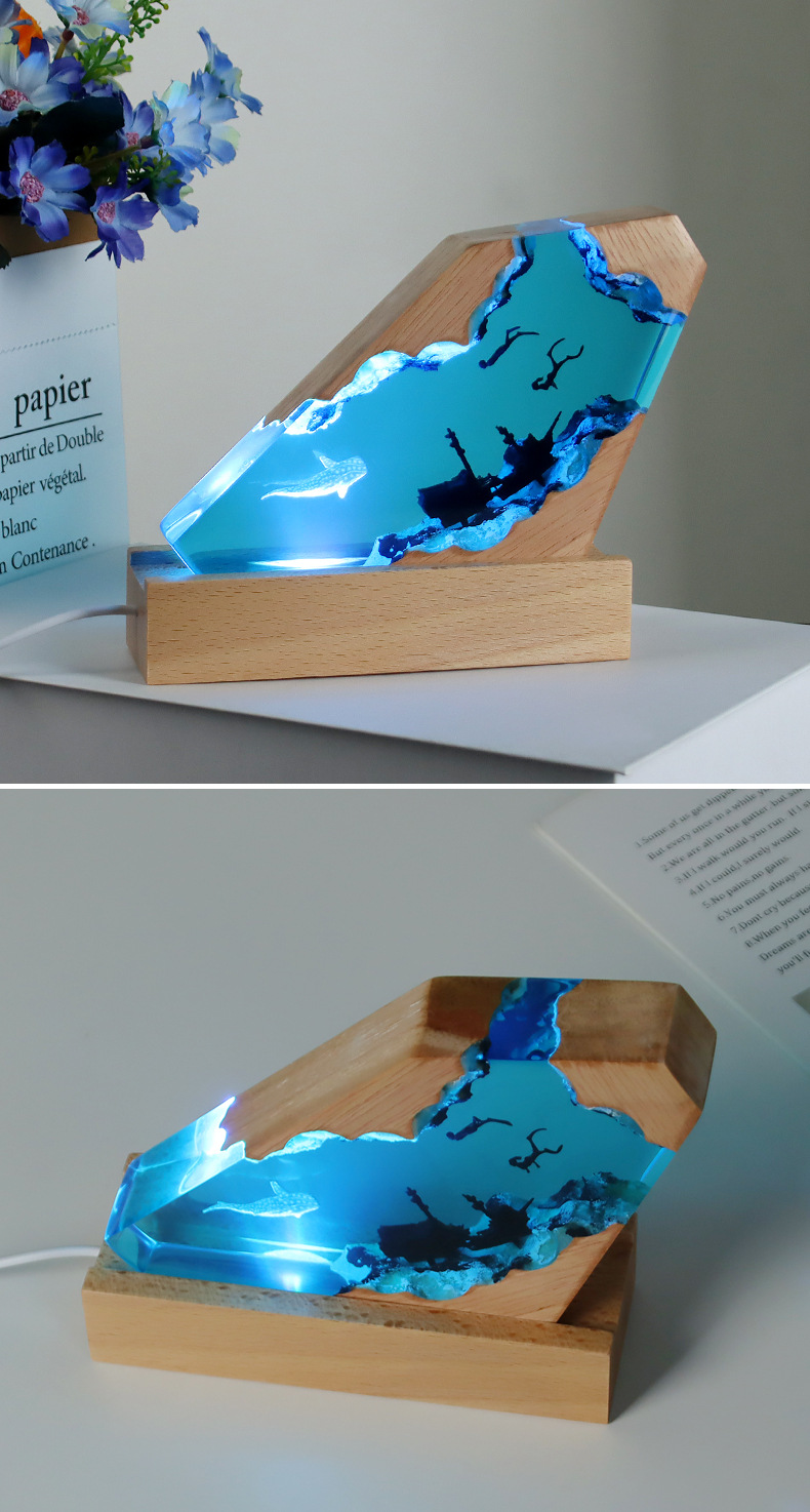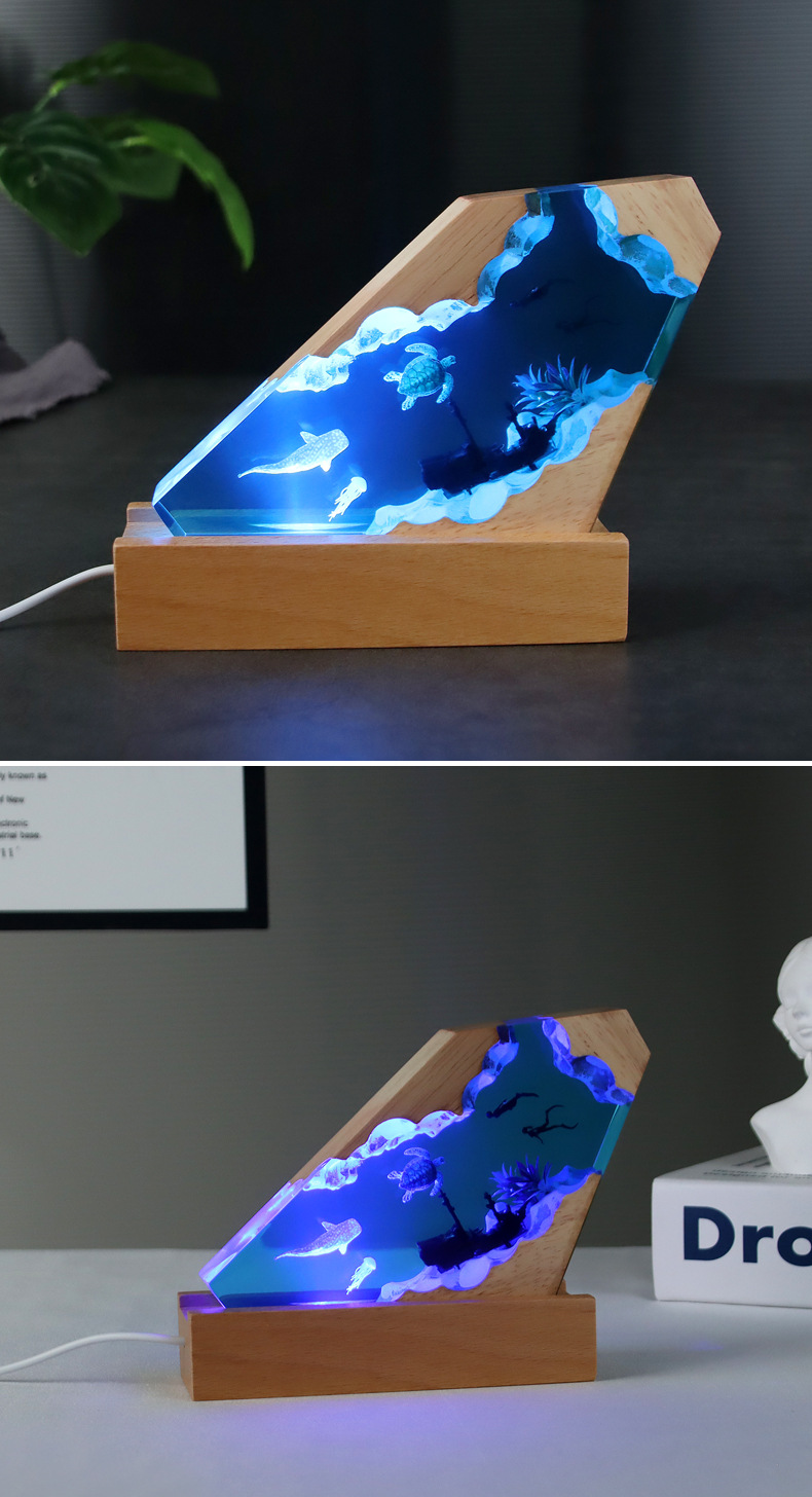 해양 미니어처 레진 야간 조명 수제 장식품 에폭시 원목 램프 베이스 공예품 해외 인기 상품 해양 테마스토어 가기