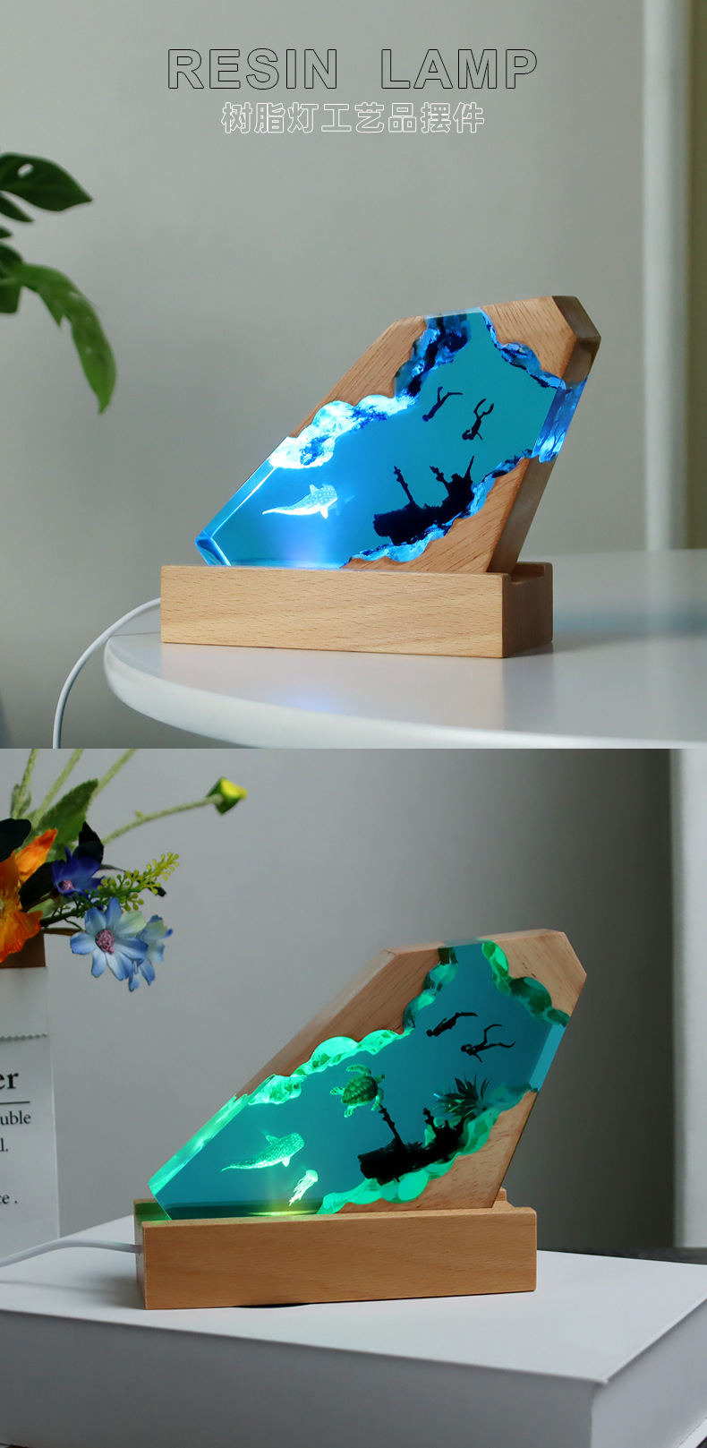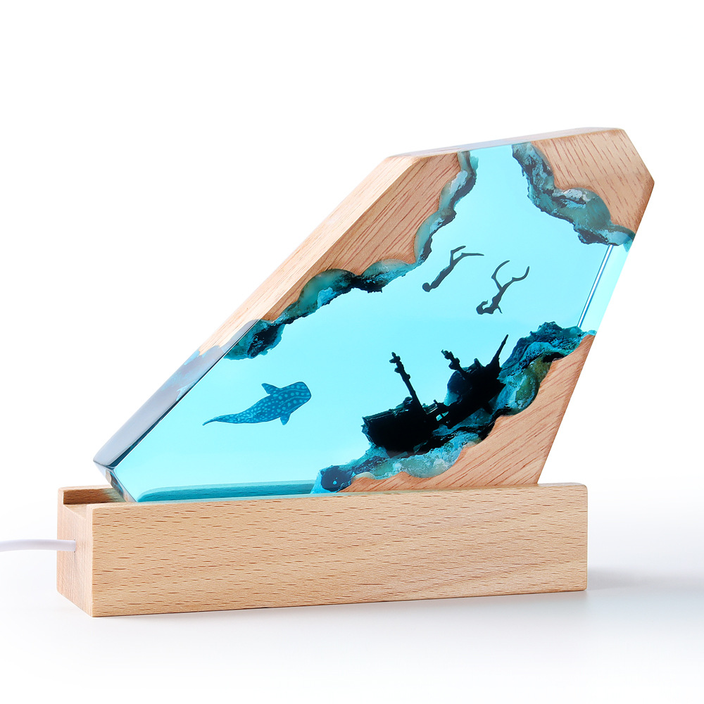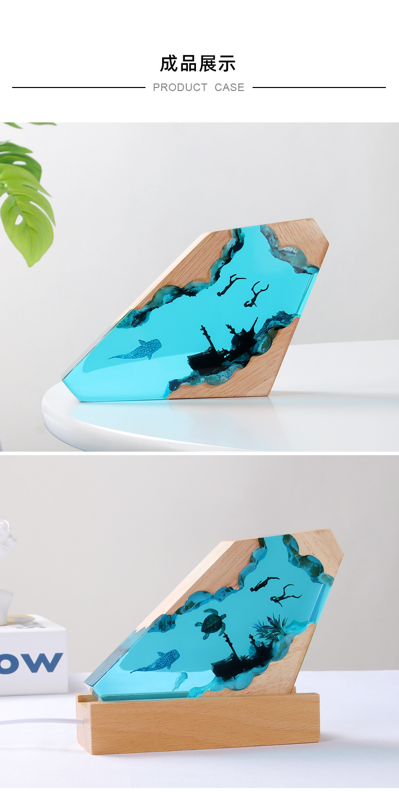 해양 미니어처 레진 야간 조명 수제 장식품 에폭시 원목 램프 베이스 공예품 해외 인기 상품 해양 테마스토어 가기