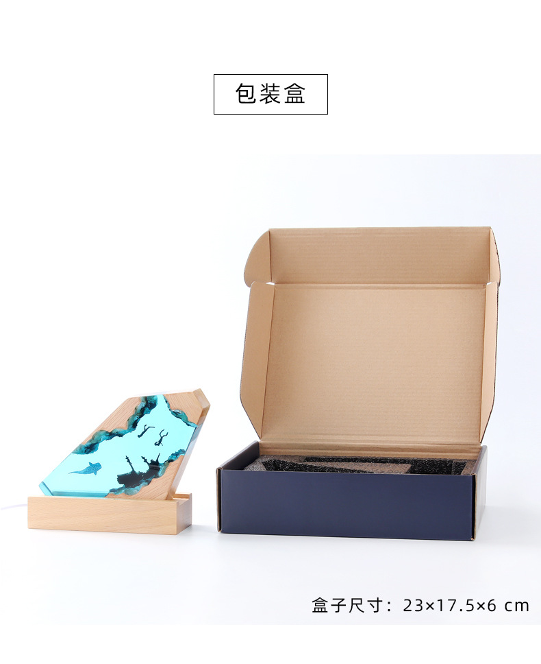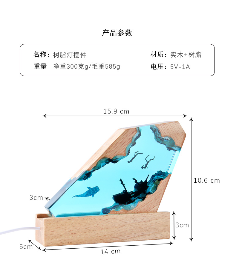 해양 미니어처 레진 야간 조명 수제 장식품 에폭시 원목 램프 베이스 공예품 해외 인기 상품 해양 테마