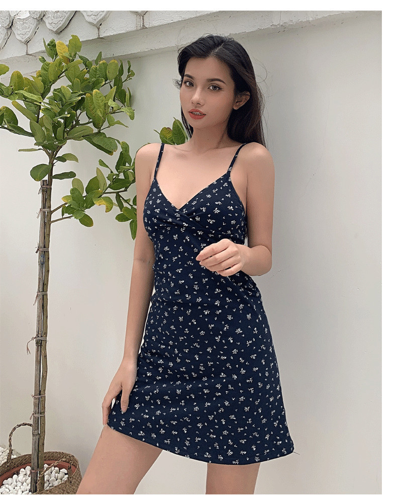2025 여름 패션 꽃 원피스 인기있는 우아한 여성 모리 요정 슬림 스트랩 짧은 스커트 BM 트렌디스토어 가기