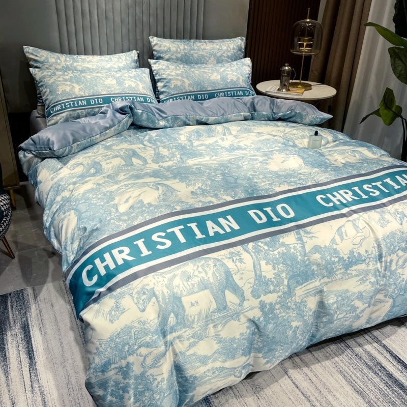 가벼운 럭셔리 디자인 센스 얇은 아이스 실크 침대 시트 4 피스 세트 여름 세탁 침구 실크 텐셀 1.8 침대 더블