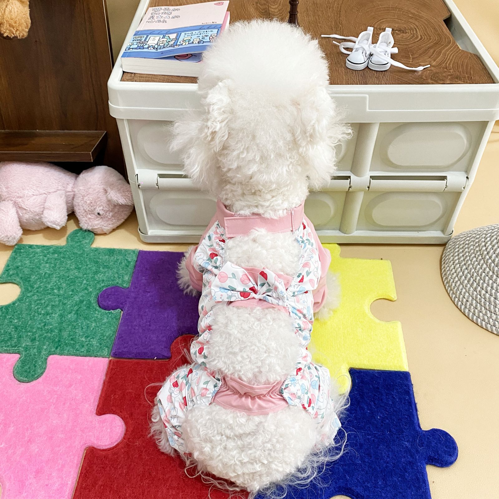 귀여운 개 Bixiong 테디 워킹 바지 사계절 유니버설 방진 외국식 튤립 애완 동물 방진 바지스토어 가기