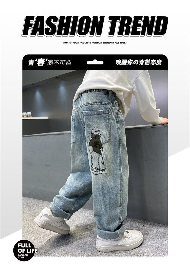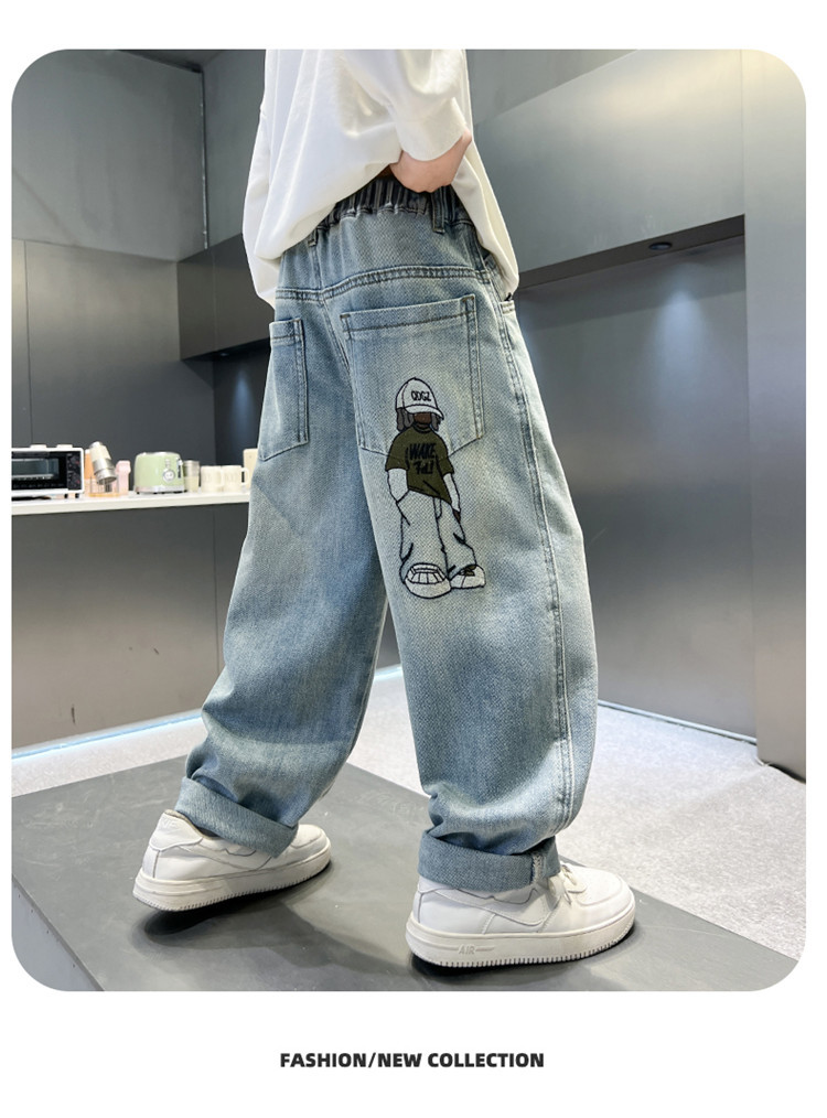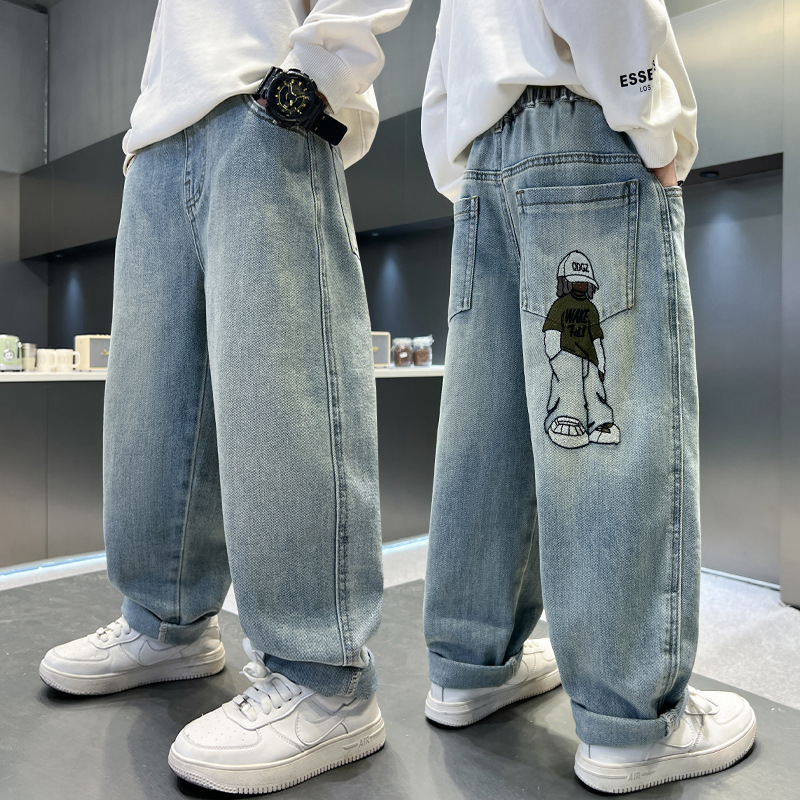 어린이 소년의 봄과 여름 바지 바지 2025 새로운 도착 중 및 대형 어린이 봄 여름 소년 봄 잘 생긴 청바지스토어 가기