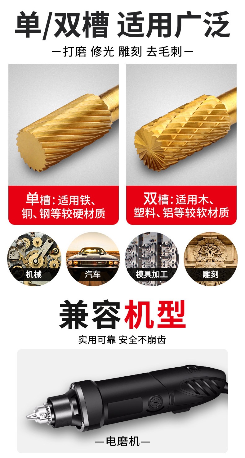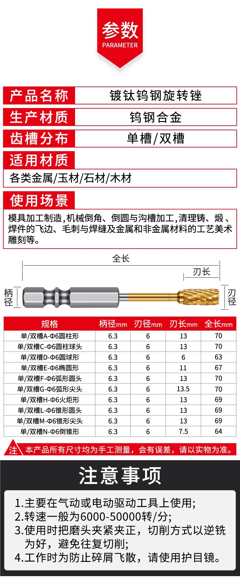 티타늄 도금 텅스텐 스틸 로터리 파일 카바이드 밀링 커터 리밍 내부 연삭 헤드 금속 플라스틱 목재 전기 연삭 기계 연삭 헤드