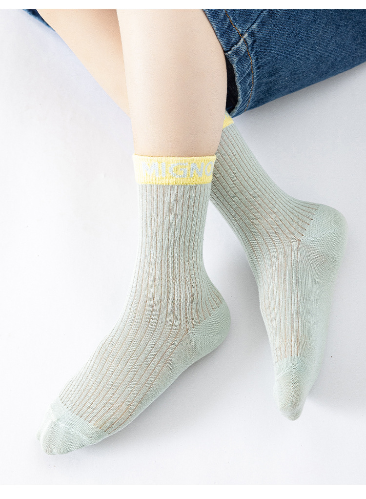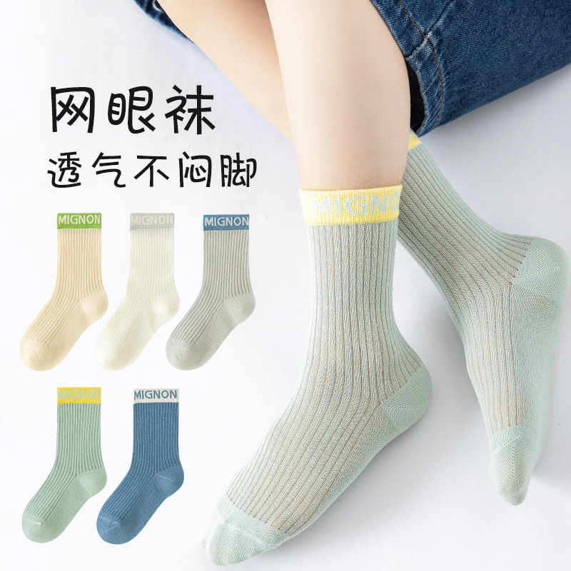 여름 얇은 메쉬 어린이 양말 Luo Kou 색상 일치 문자 어린이 튜브 양말 통기성 남성과 여성의 아동면 양말 조수