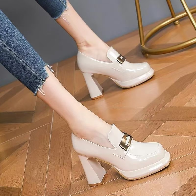 금속 버클 다목적 하이힐 여성 로퍼 2025 봄 새로운 패션 두꺼운 밑창 두꺼운 뒤꿈치 방수 플랫폼 신발스토어 가기