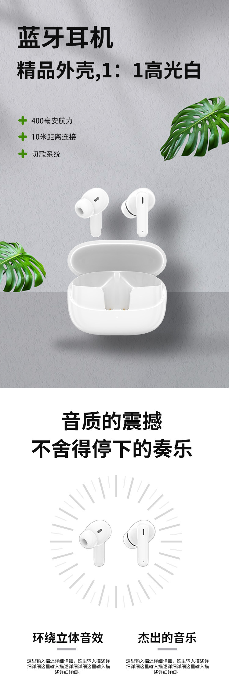고광택 흰색 블루투스 헤드셋 전체 귀 니켈 도금 충전식 ANC ENC 이중 소음 감소 큰 배터리 균형추 편안한 느낌스토어 가기