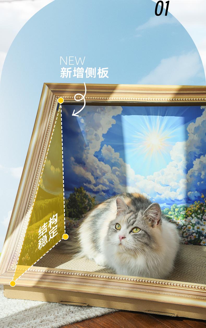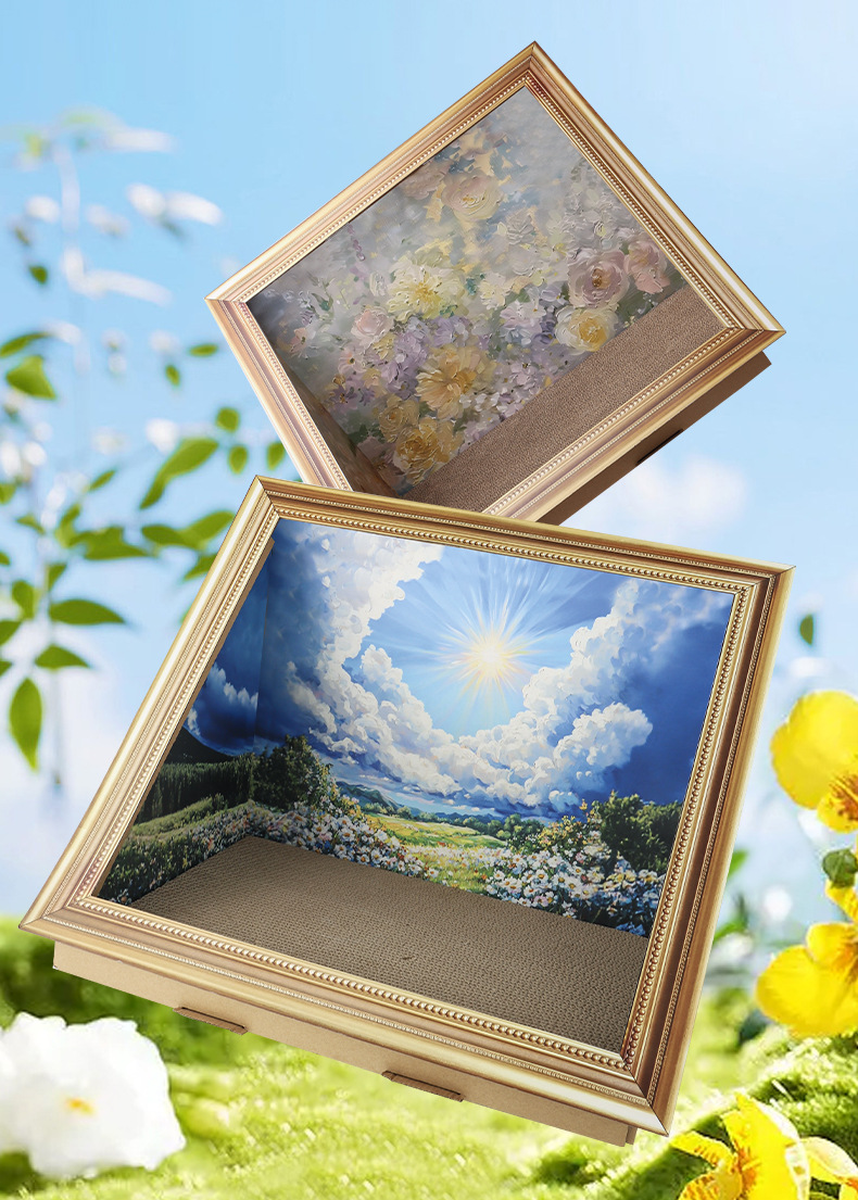 Meow Xianer 유화 고양이 둥지 창조적 인 고양이 긁는 보드 고양이 둥지 2 대 1 유럽 장식 그림 장난감 애완 동물 용품스토어 가기