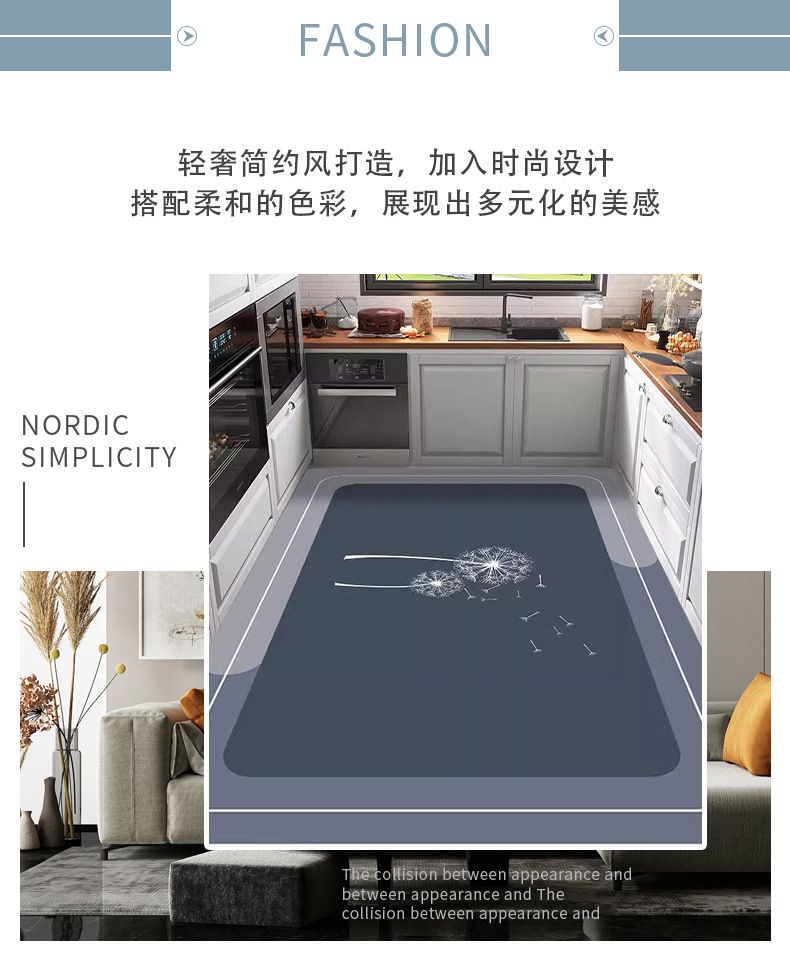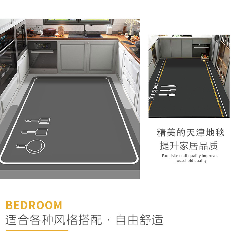 주방 바닥 매트 넓은 지역 풀 스프레드 물 흡수제 및 오일 흡수 규탄 진흙 바닥 매트 가정용 먼지 방지 미끄럼 방지 매트 간편한 발 매트