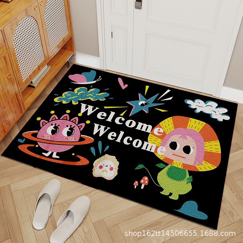 만화 홈 플로어 매트 가정용 화장실 더러운 저항 진흙 방지 습기 방지 안정적인 미끄럼 방지 간편한 실크 링 풋 매트스토어 가기