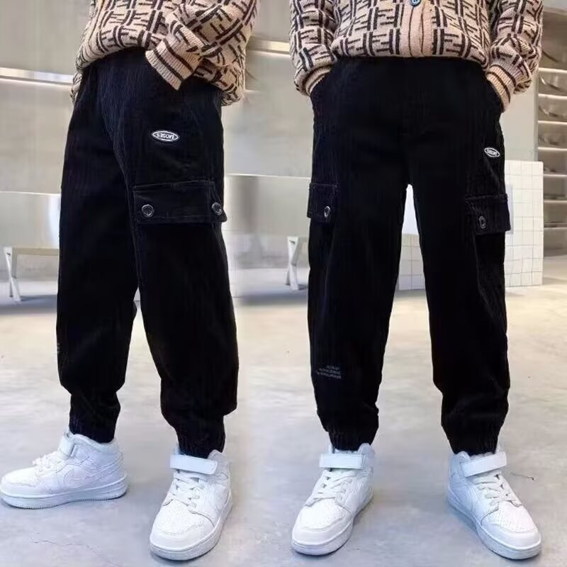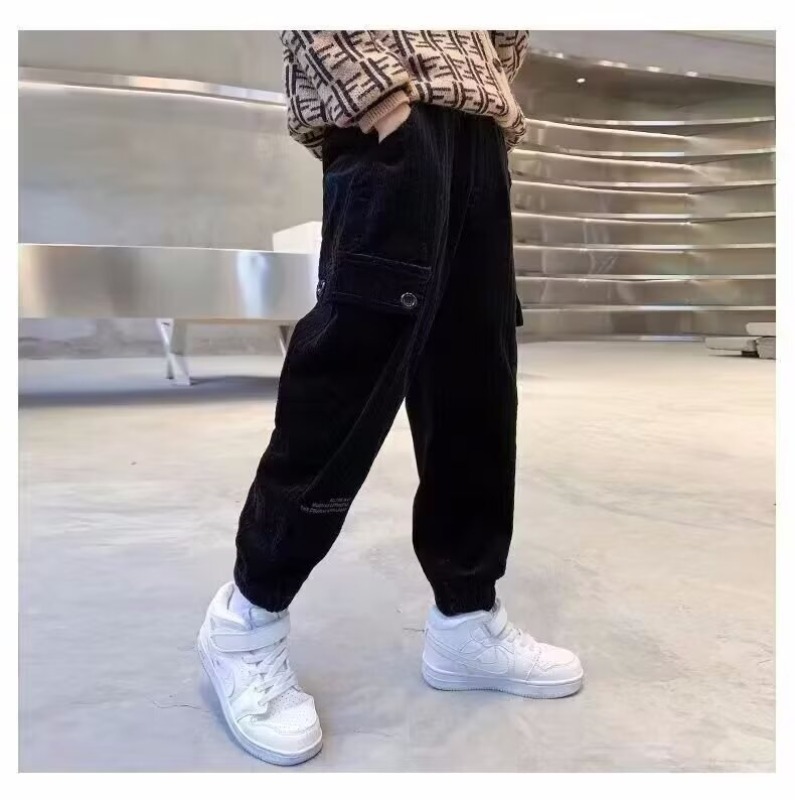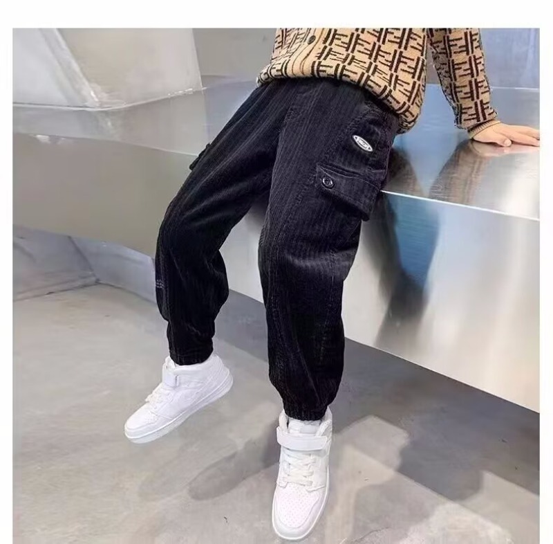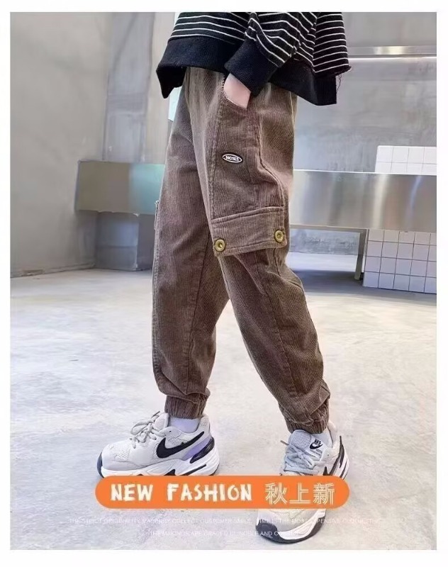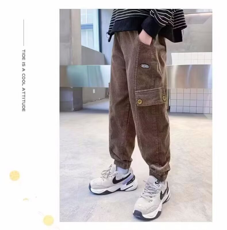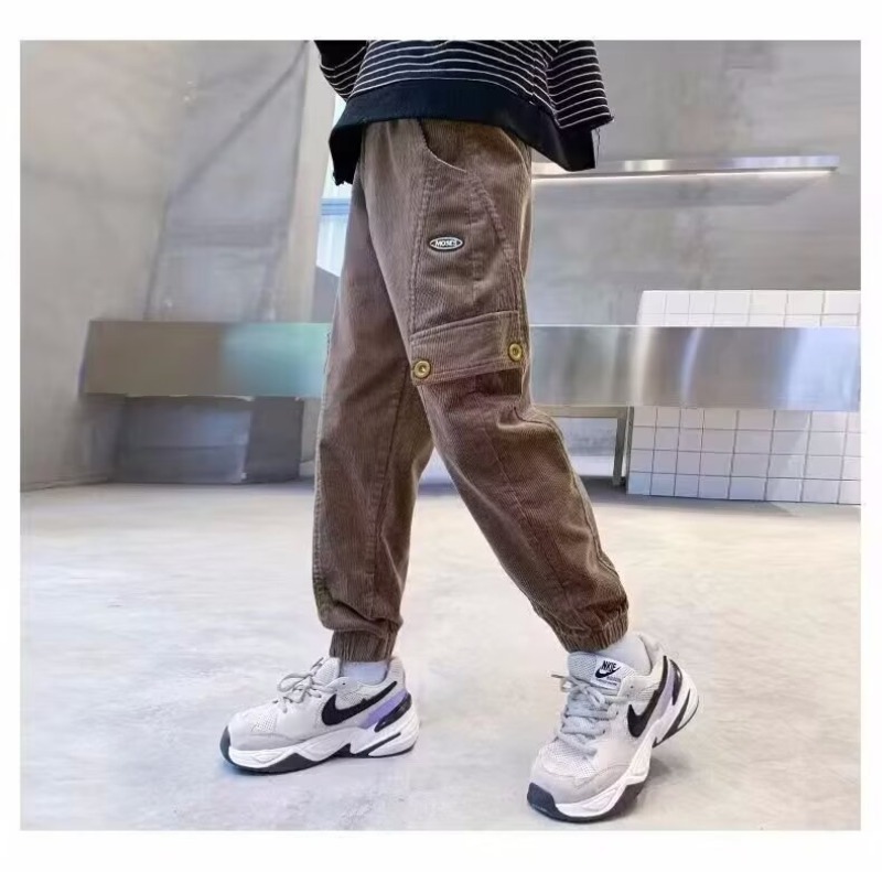 어린이 바지 소년 작업복 바지 봄과 가을 어린 소년의 캐주얼 바지 2025 봄 새로운 유행 쿨 루즈 일본 스타일스토어 가기