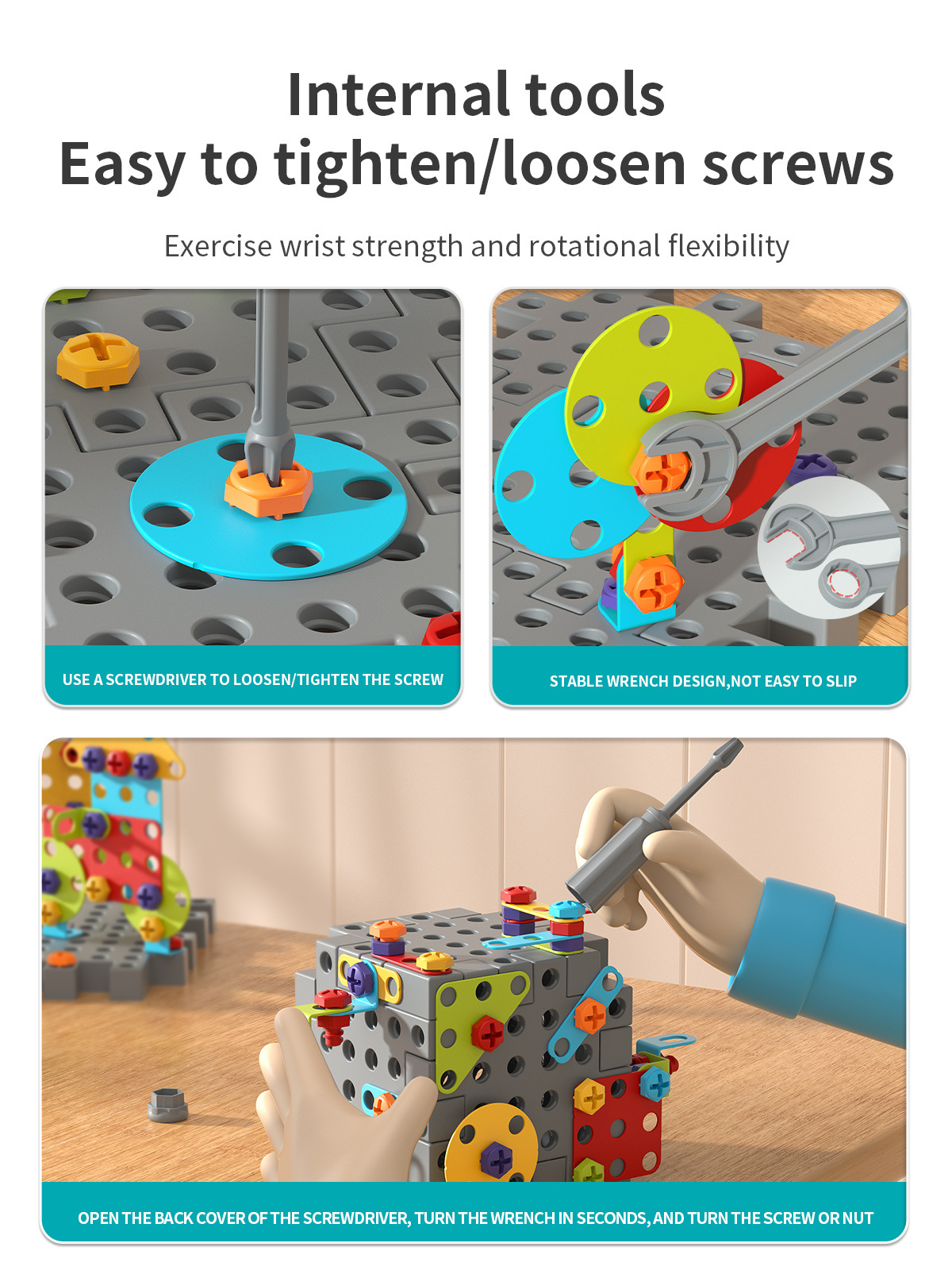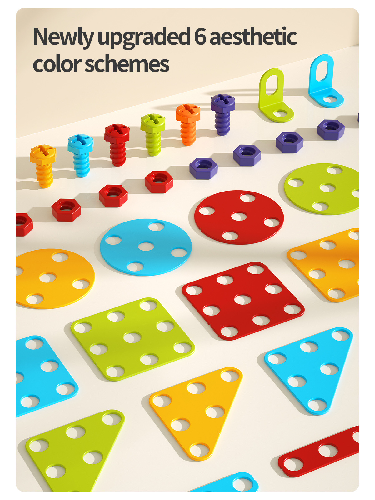 [국경 독점] 새로운 어린이 DIY 스크류 빌딩 블록 너트 조합 조기 교육 감각 조립 교육 장난감