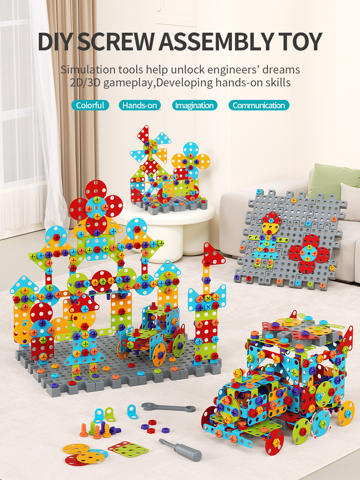 [국경 독점] 새로운 어린이 DIY 스크류 빌딩 블록 너트 조합 조기 교육 감각 조립 교육 장난감스토어 가기