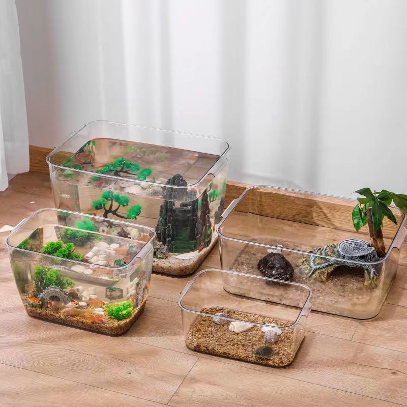 플라스틱 어항 투명 모조 유리 초대형 직사각형 라운드 테이블 탑 어셈블리 작은 에코 병 안티 드롭 아크릴스토어 가기
