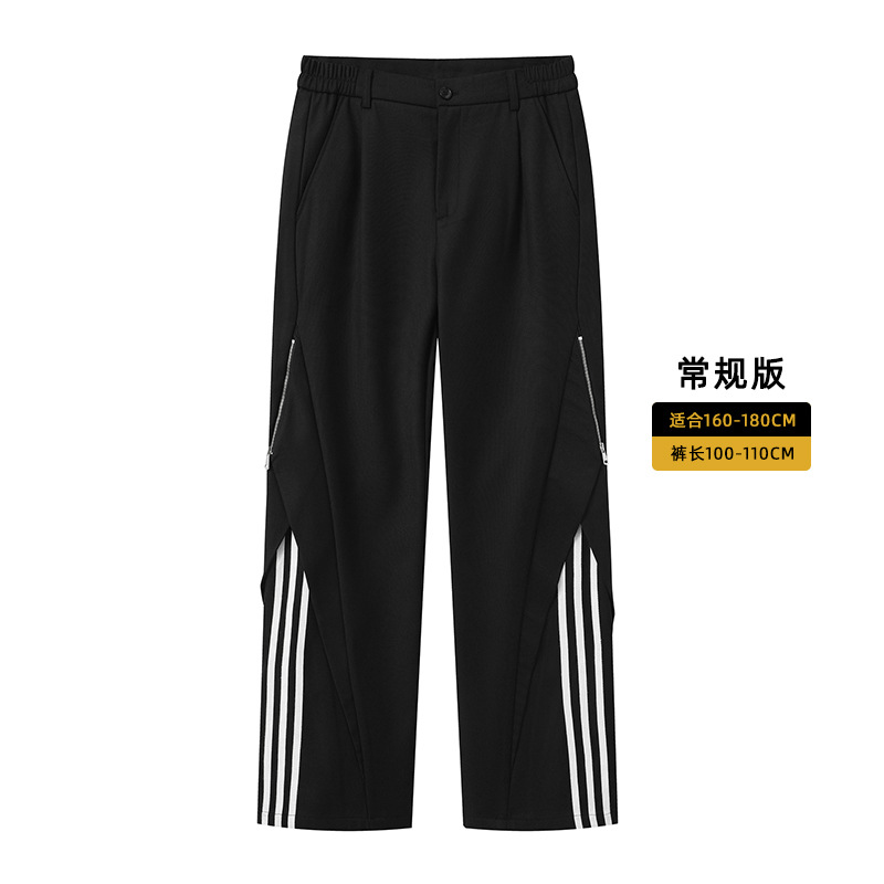 무추 남성복∣미국식 하이 스트리트 스타일 키 큰 남성용 캐주얼 정장 바지, 세 줄무늬 루즈핏 와이드 팬츠