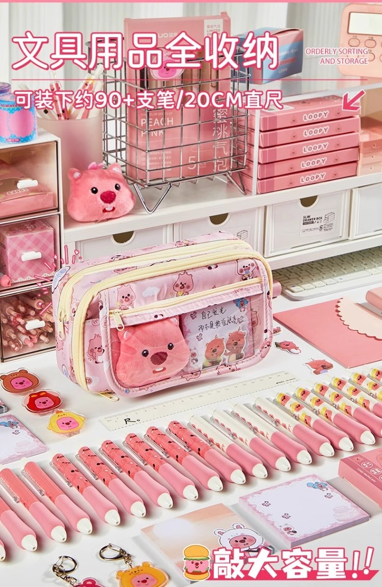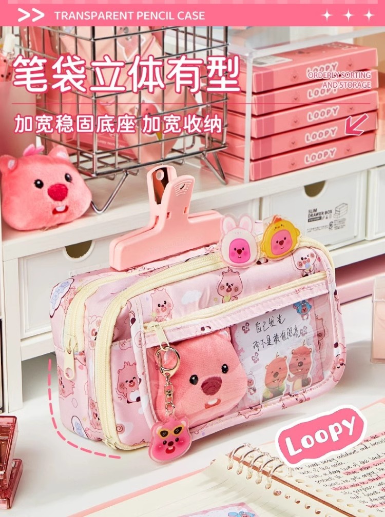 루비 연필 가방 소녀의 슈퍼 대용량 연필 케이스 중학생 통증 가방 작은 비버 간단한 소녀 연필 가방스토어 가기