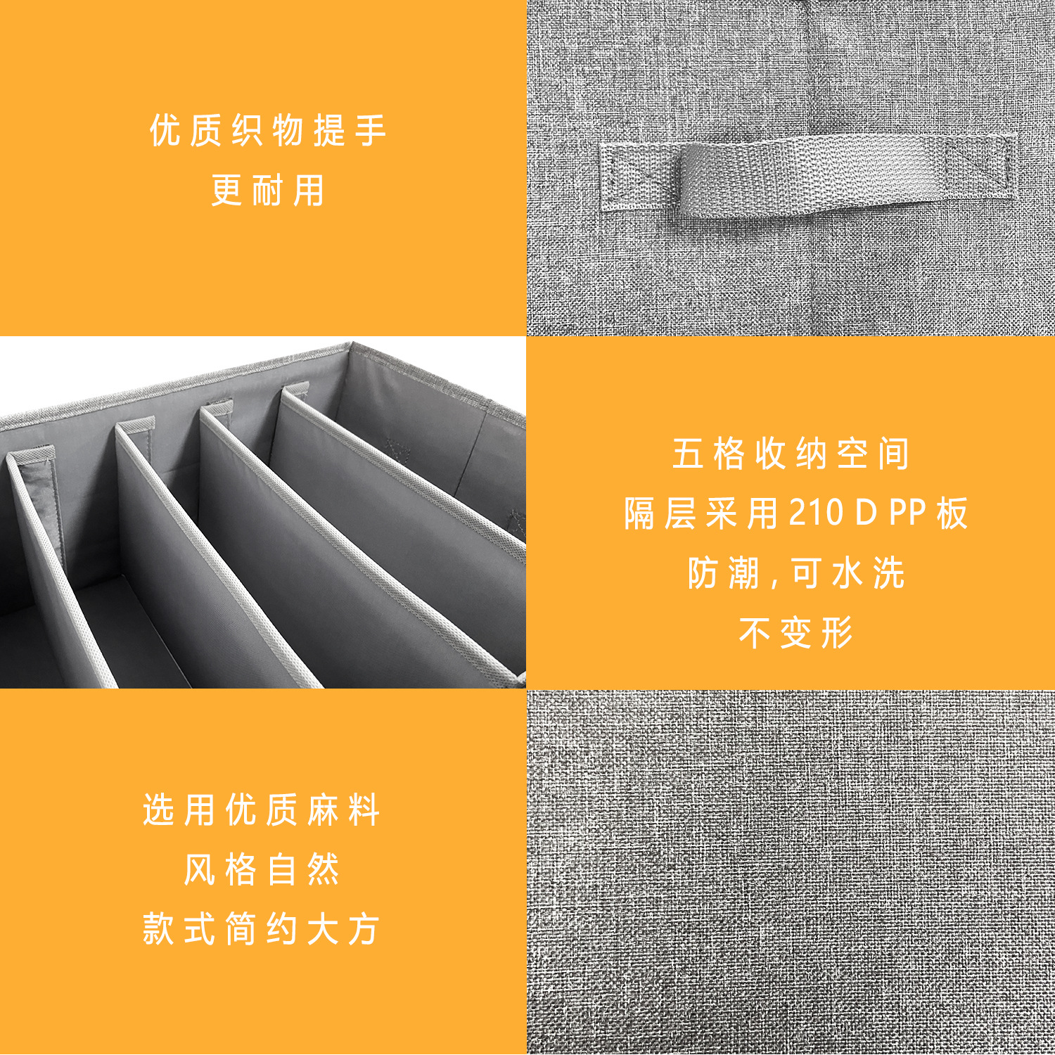 의류 및 바지 저장 상자 접이식 직물 구획 저장 상자 가정용 서랍 형 계층화 된 PP 보드 마감 보관 상자