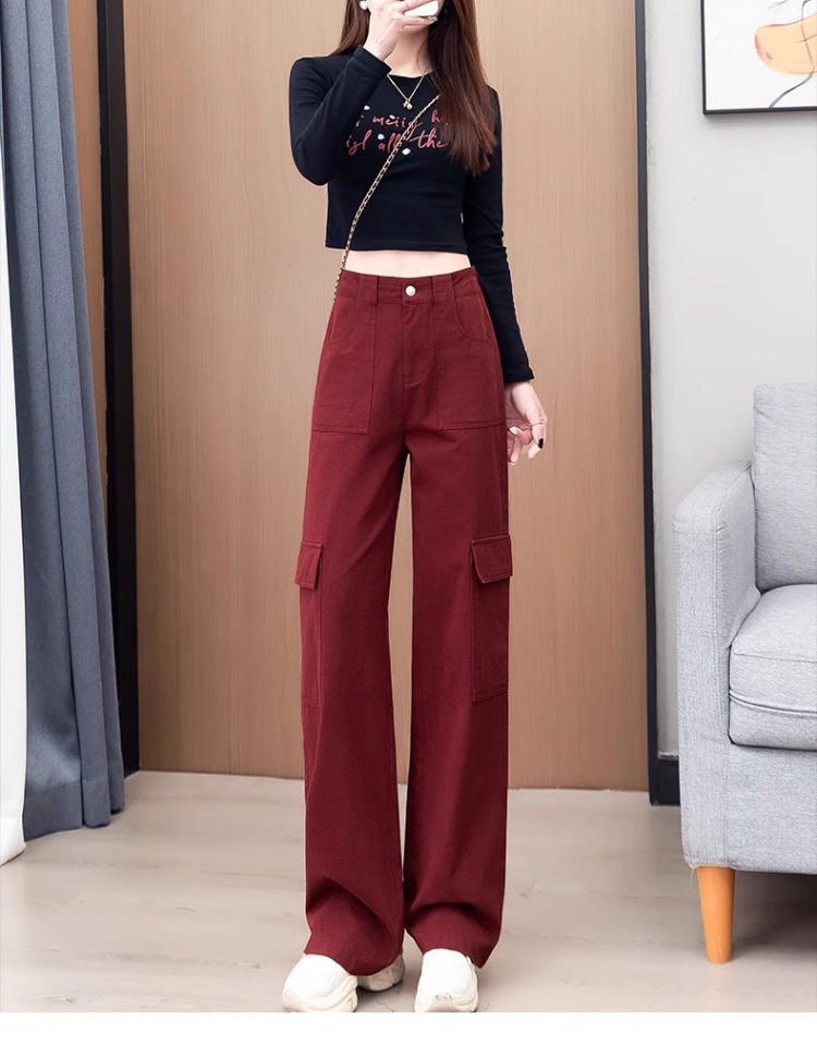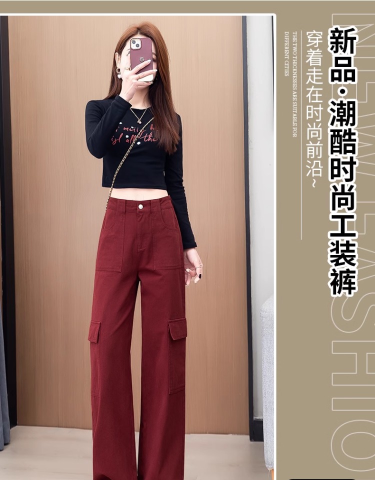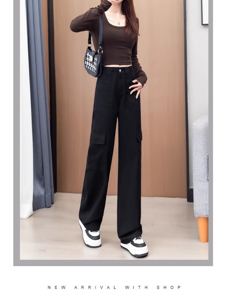 검은 작업복 여성의 2025 새로운 도착 유행 브랜드 느슨한 방풍 방수 봄 및 가을 플러스 사이즈 바지스토어 가기