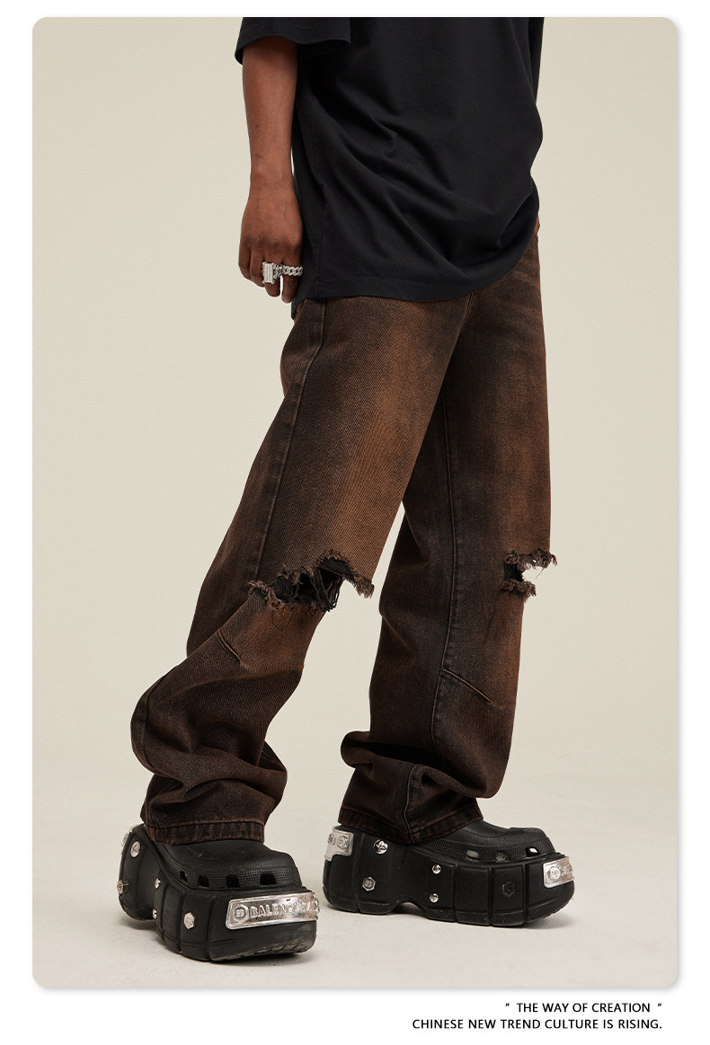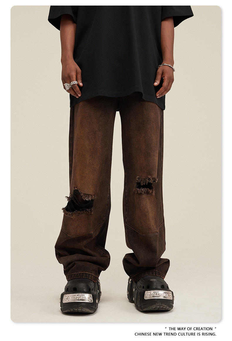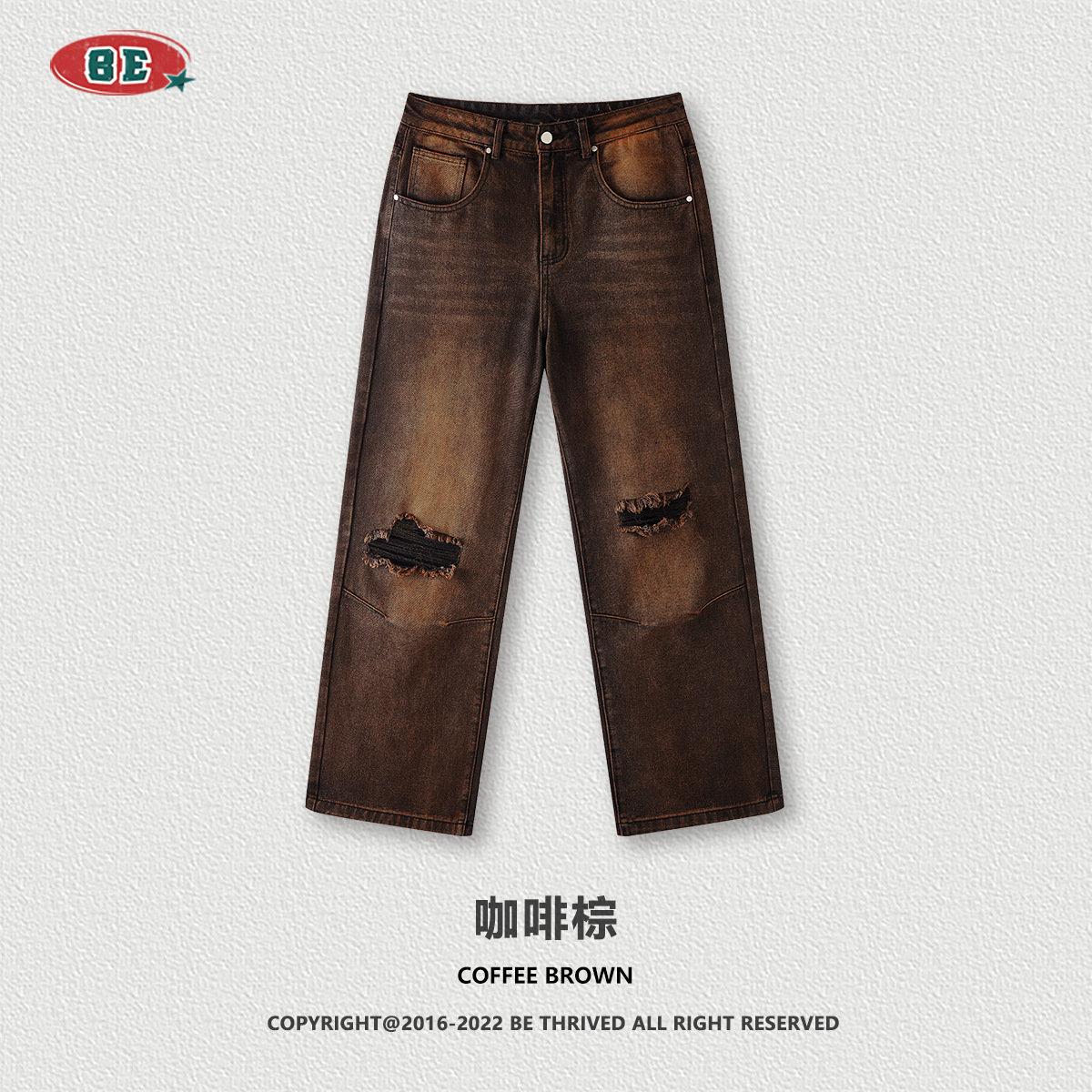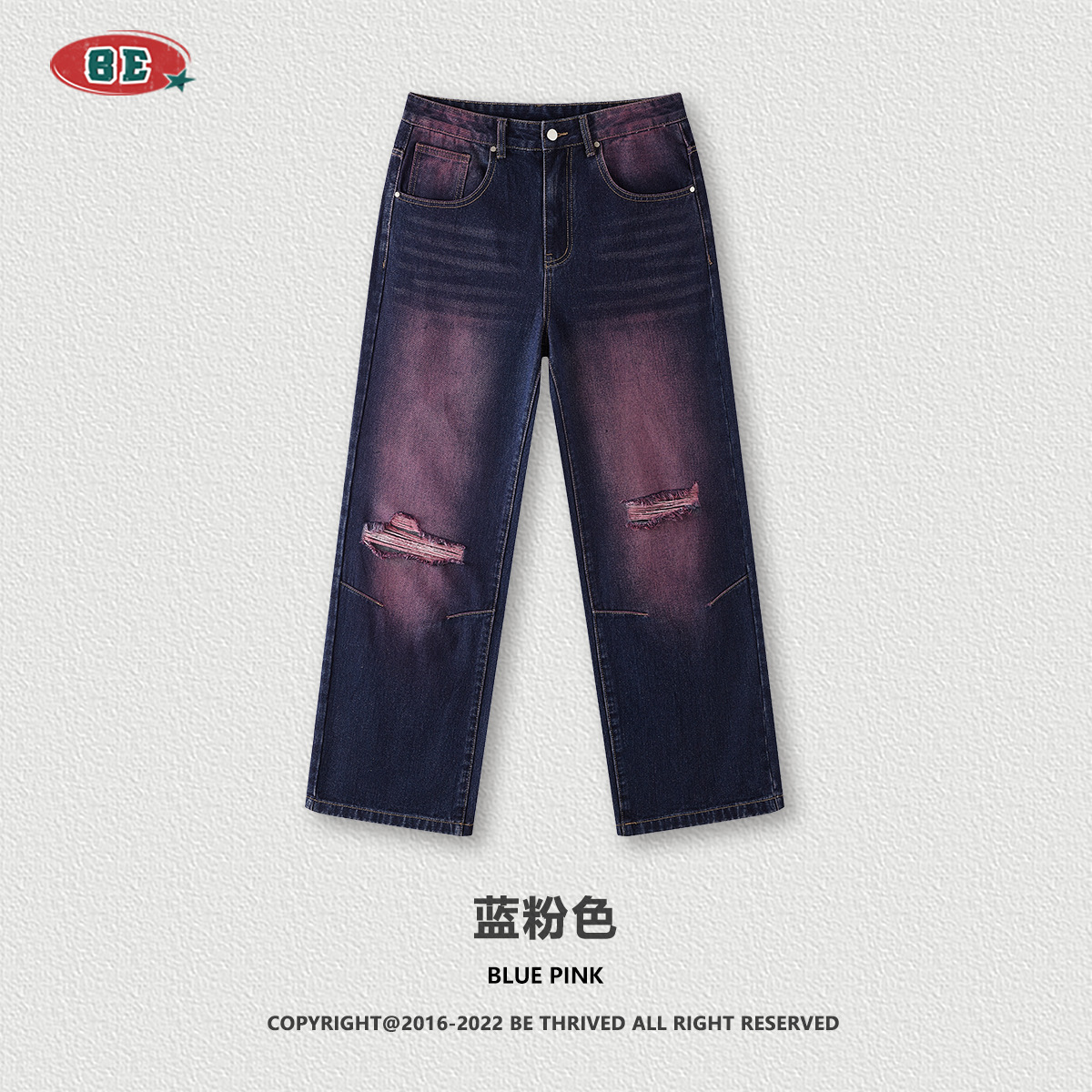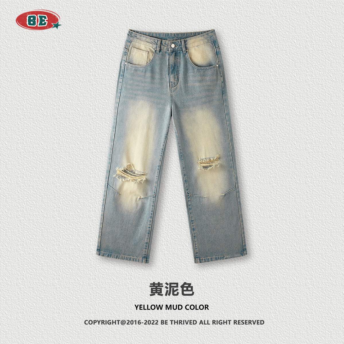 BE 특별 제공 2025 봄 미국 패션 브랜드 하이 스트리트 다크 리핑 청바지 남성용 힙합 루즈 와이드 레그 바지스토어 가기