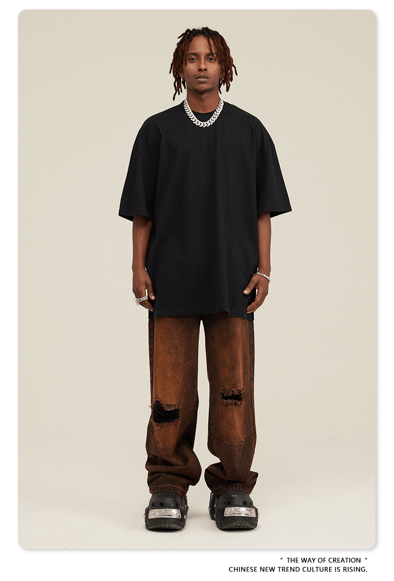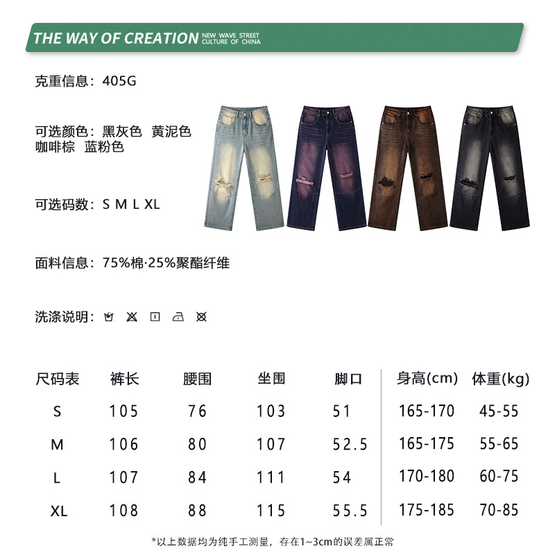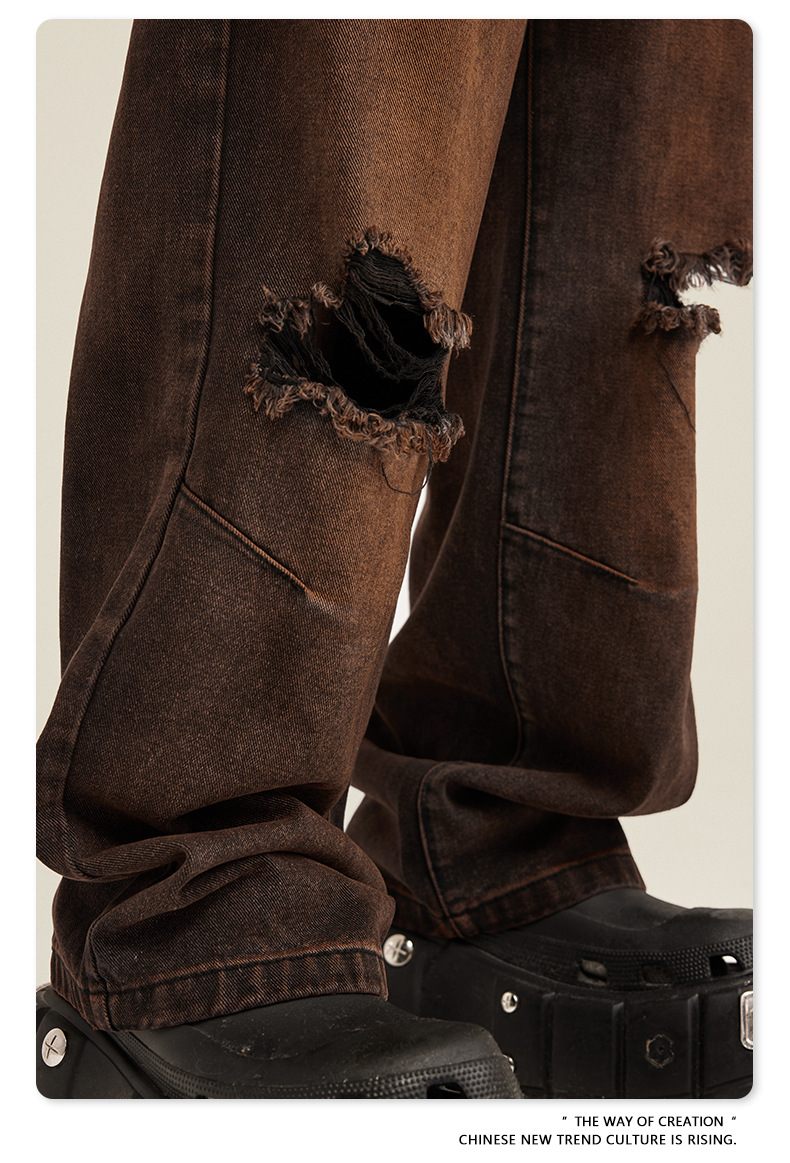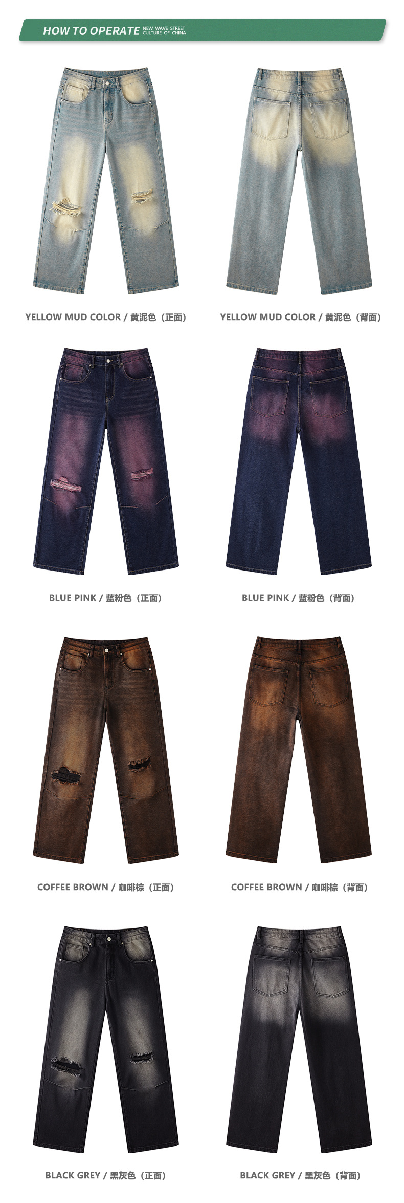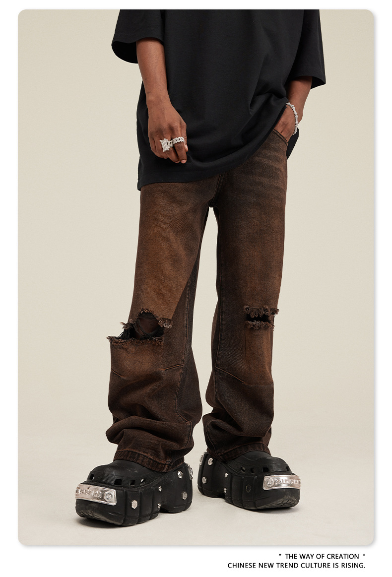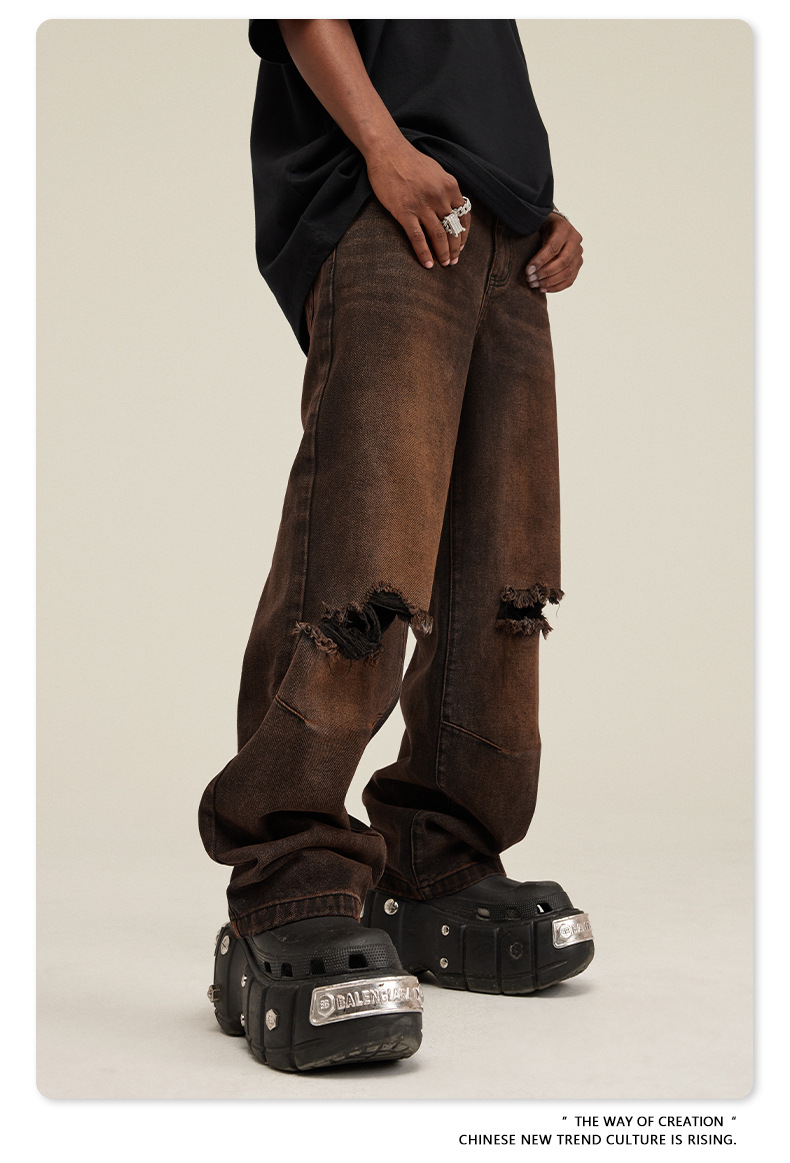 BE 특별 제공 2025 봄 미국 패션 브랜드 하이 스트리트 다크 리핑 청바지 남성용 힙합 루즈 와이드 레그 바지스토어 가기