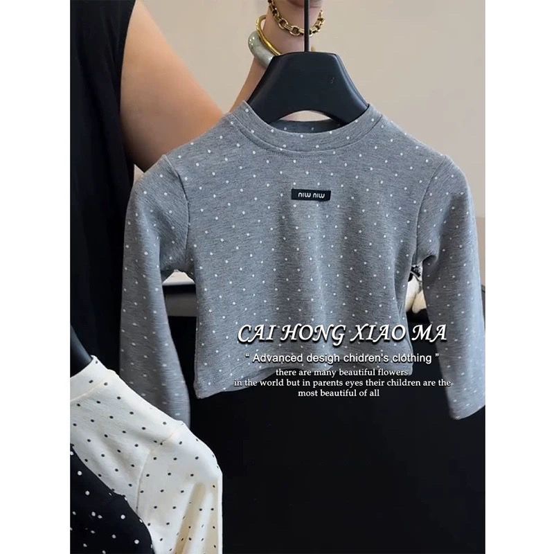 봄과 가을 여성 아동복 티셔츠 아기의 서양식 어린이 성격 유행 브랜드 한국 스타일 유행 백합 편지 짧은베이스 셔츠스토어 가기