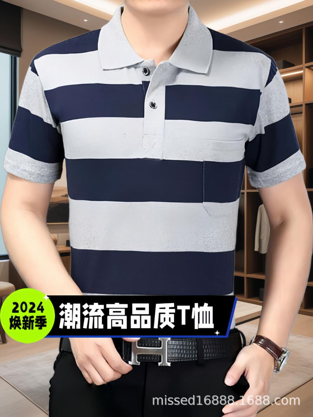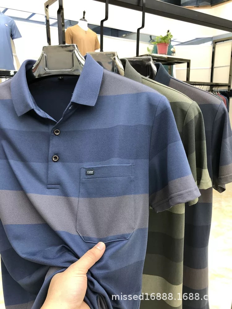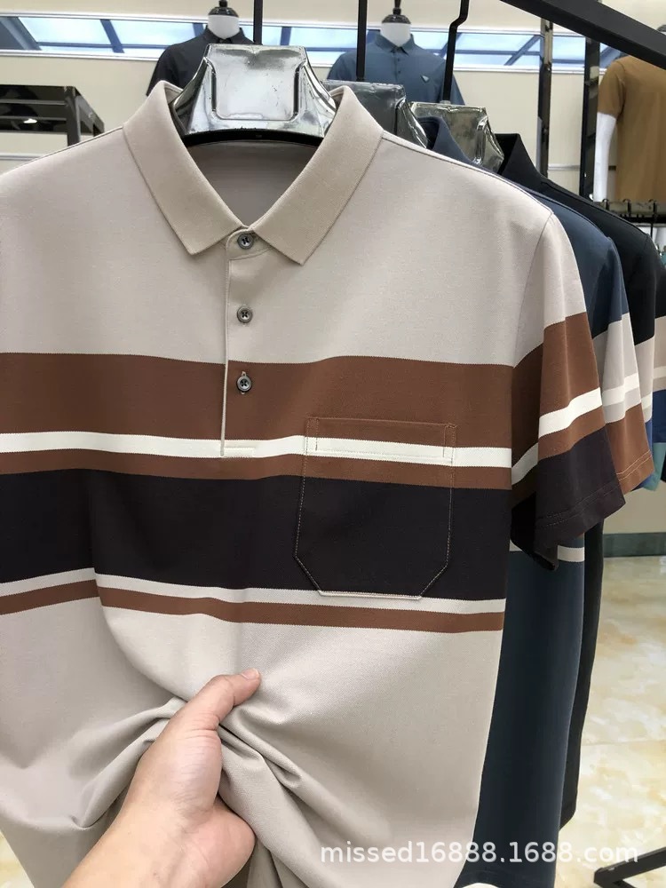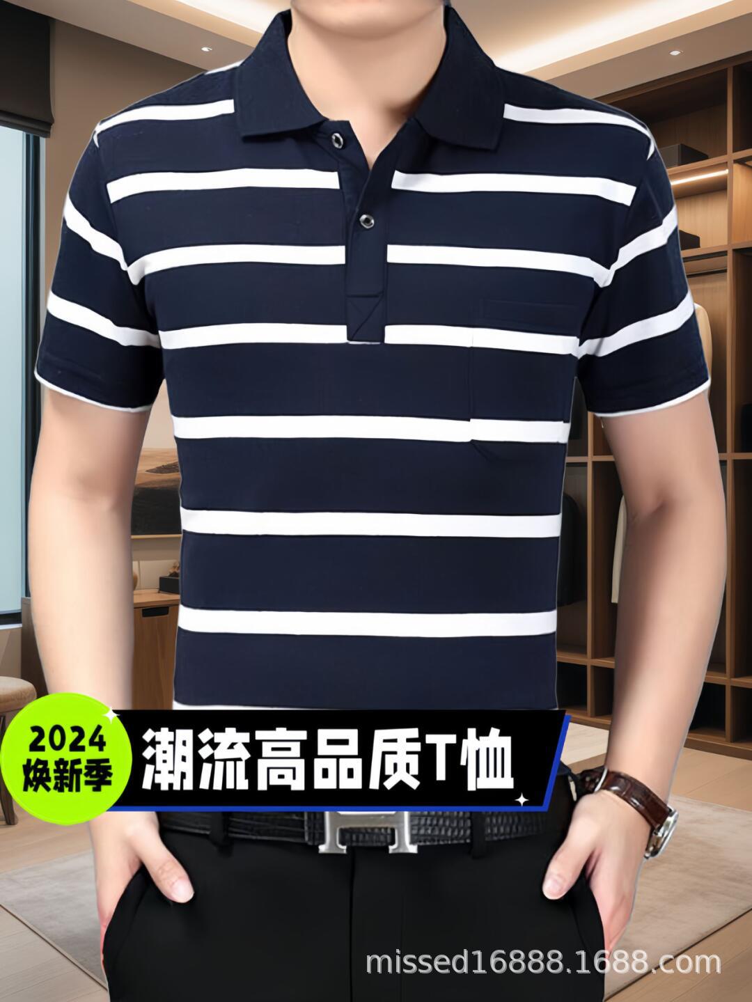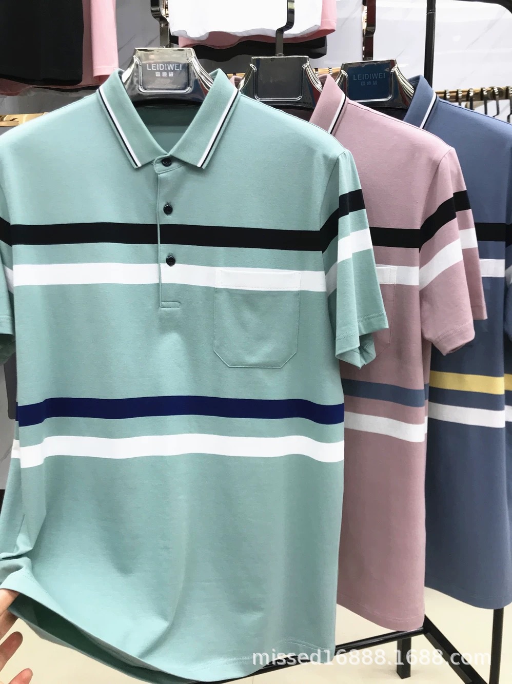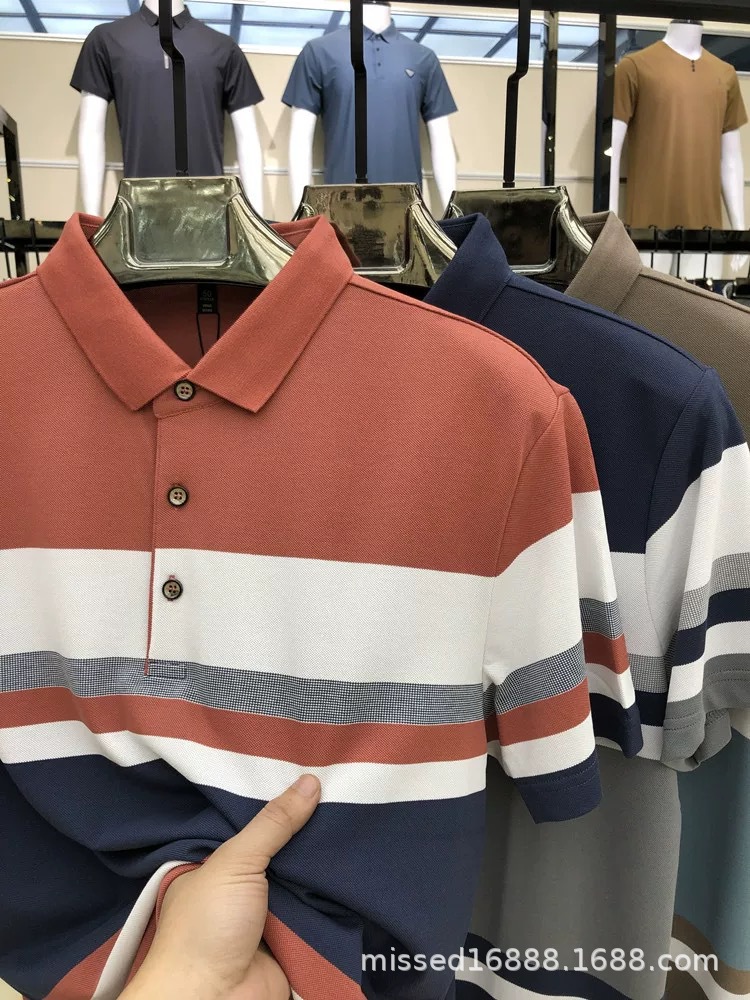 국경 간 대외 무역 스트라이프 반팔 폴로 셔츠 남성 여름 새로운 간단한 하이 엔드 센스 옷깃 티셔츠 캐주얼 비즈니스