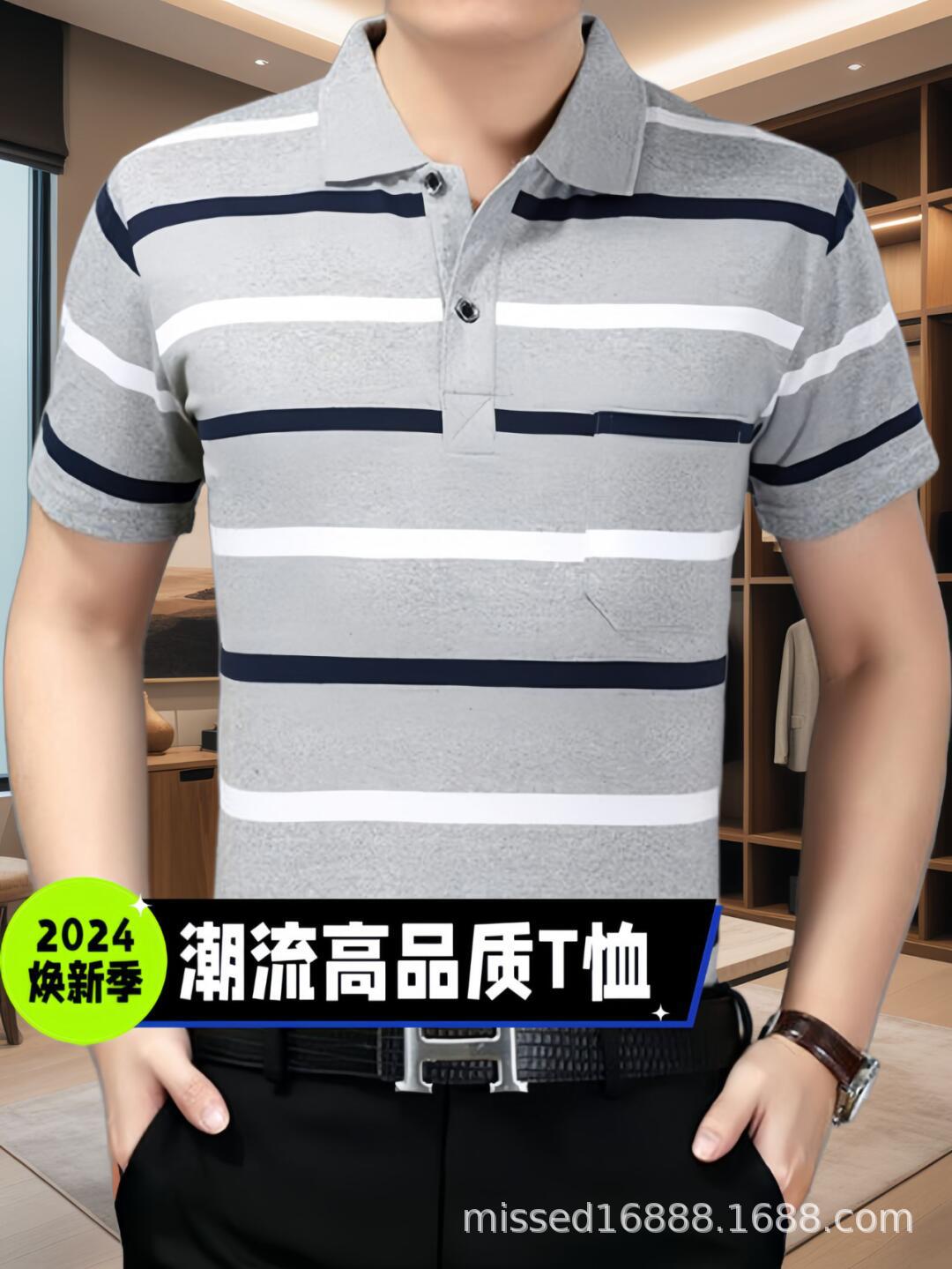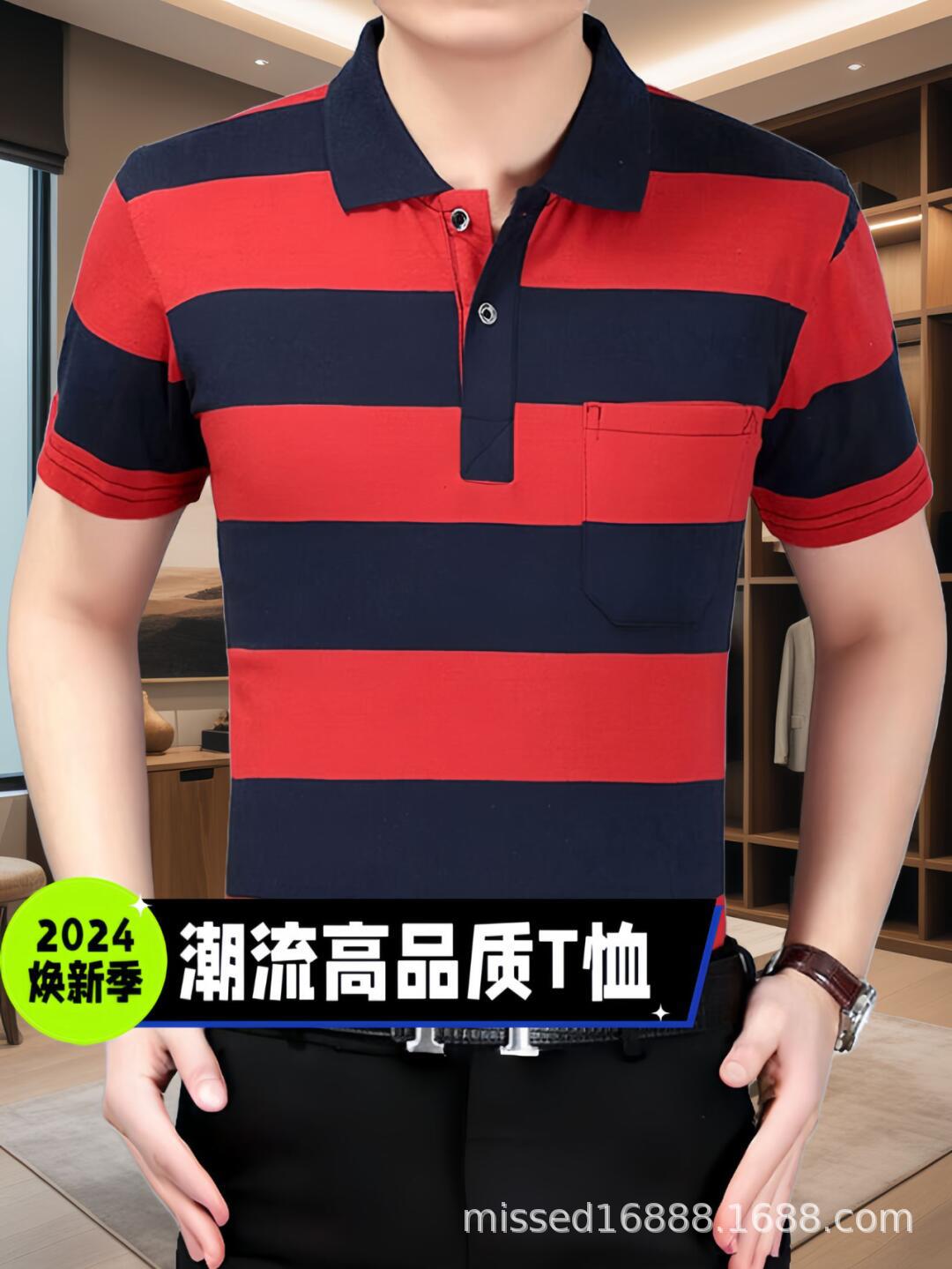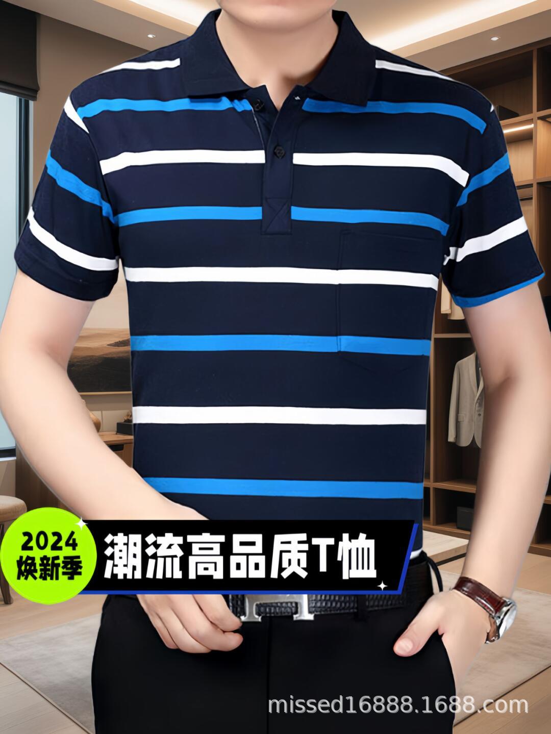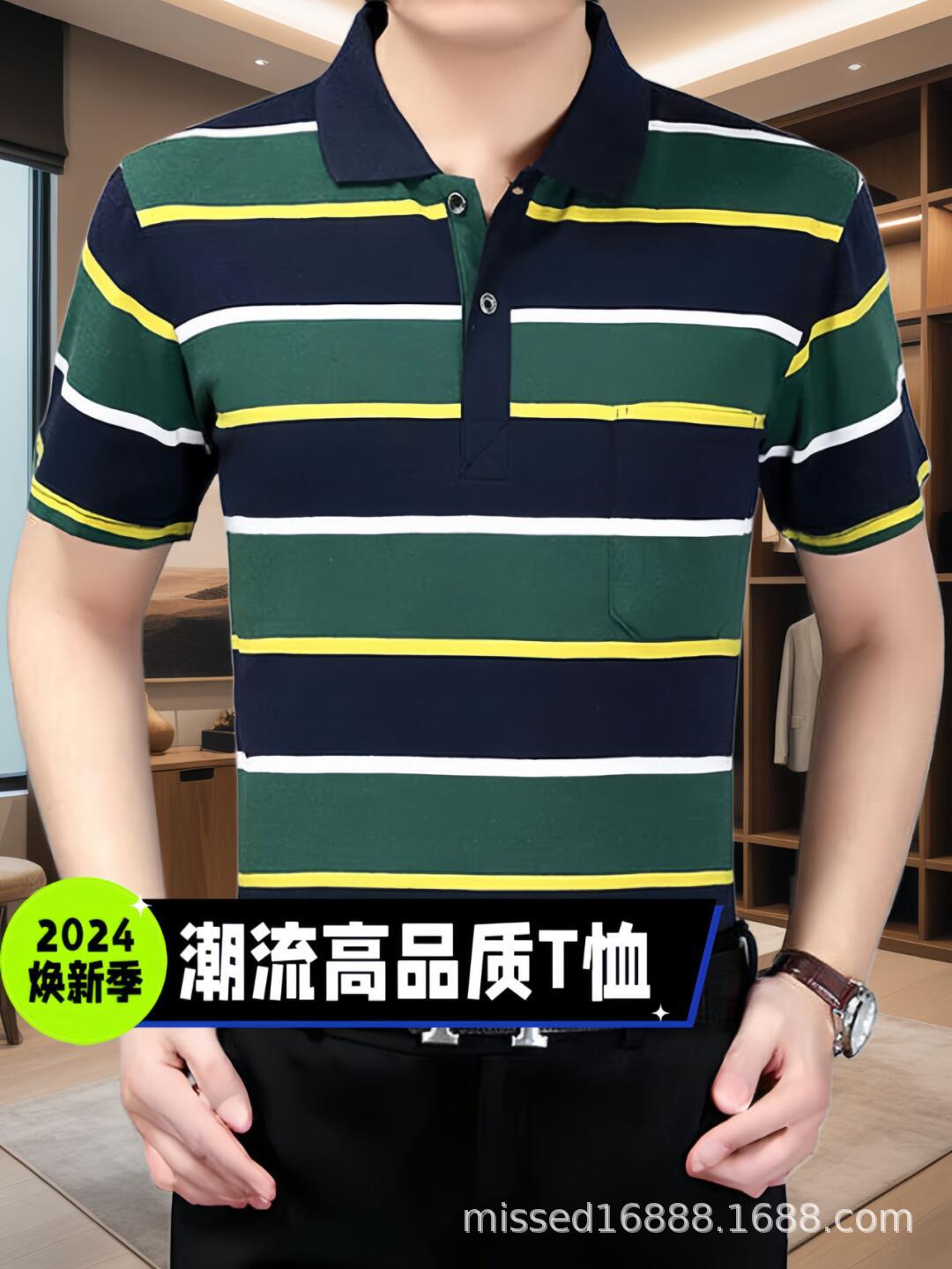 국경 간 대외 무역 스트라이프 반팔 폴로 셔츠 남성 여름 새로운 간단한 하이 엔드 센스 옷깃 티셔츠 캐주얼 비즈니스