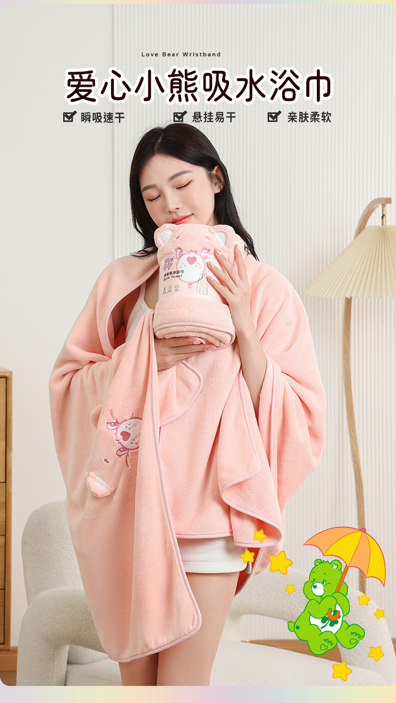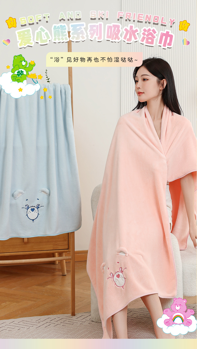 CareBears Rainbow Bear Coral Fleece 두꺼운 목욕 타월 흡수성 빠른 건조 비치 타월 가정용 머리없는 목욕 가운스토어 가기