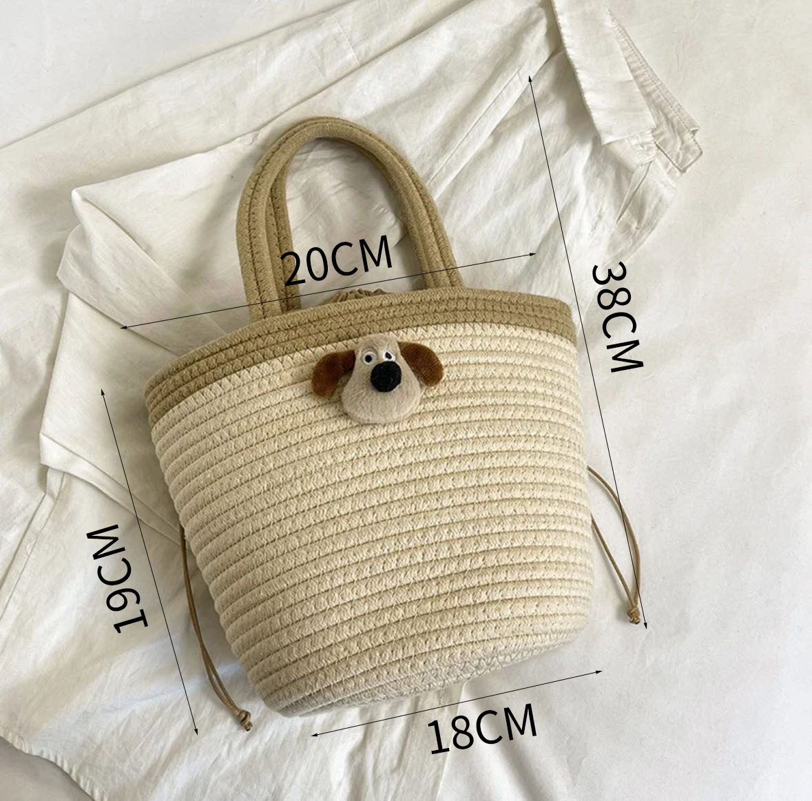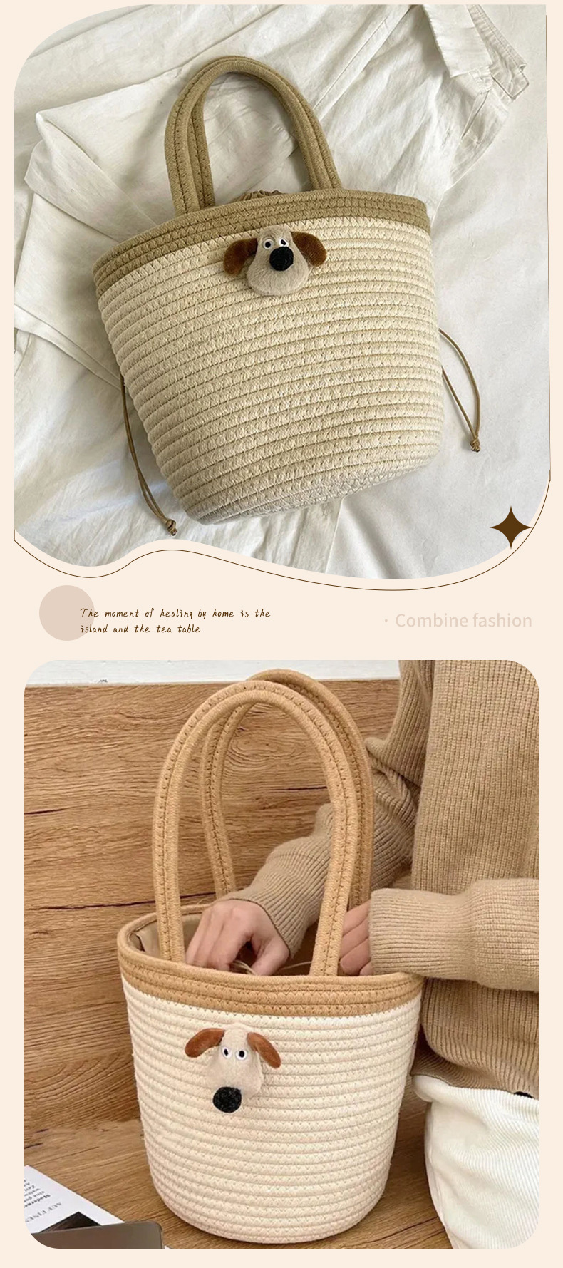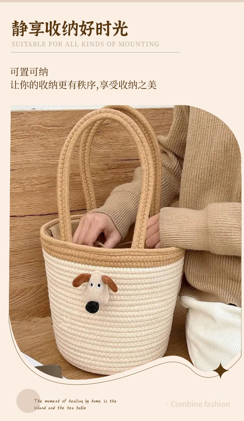 만화 틈새 디자인 면 로프 휴대용 작은 가방 2025 새로운 양동이 가방 귀여운 대용량 문자 손 가방
