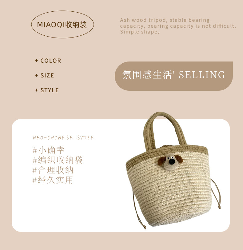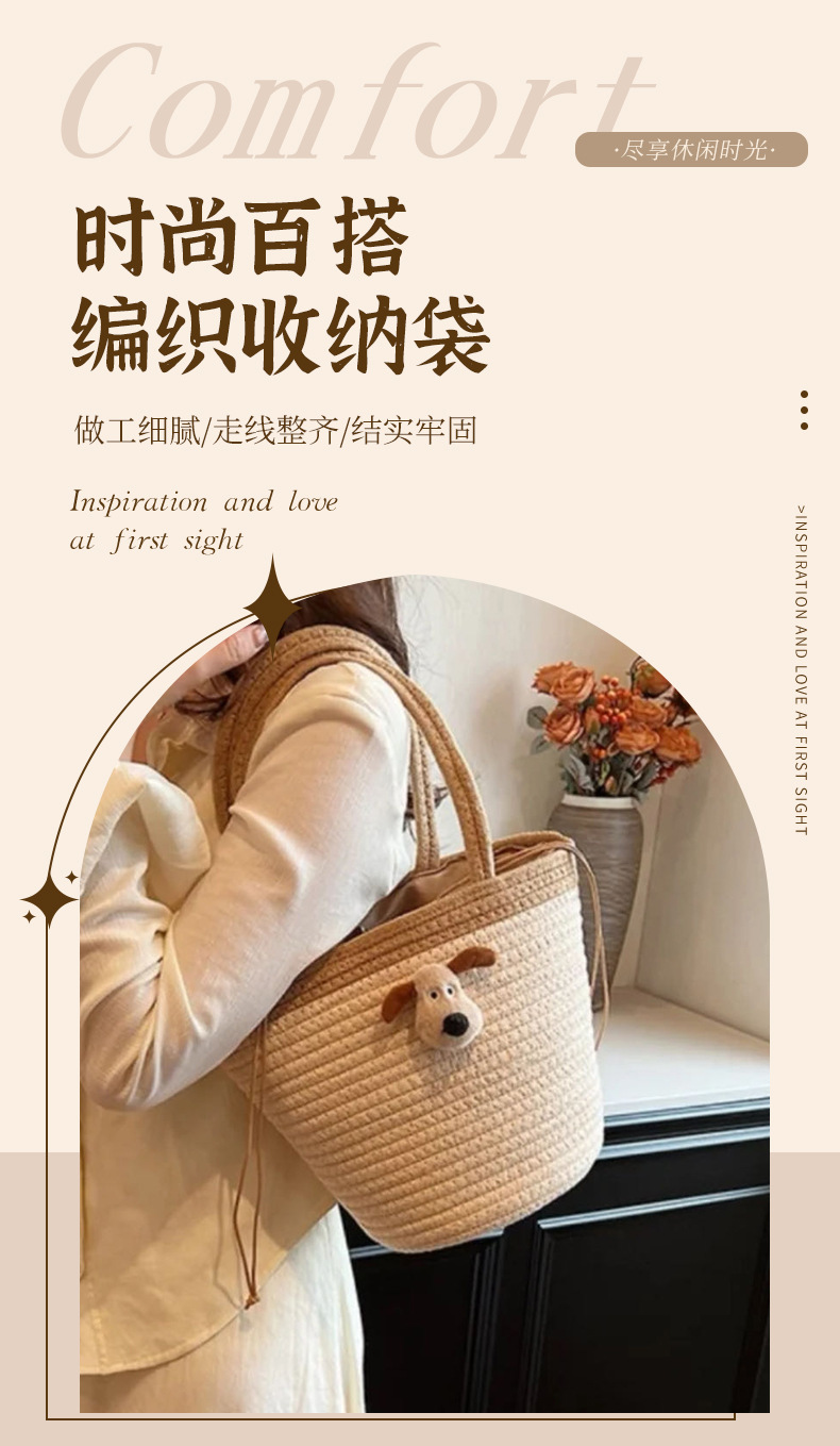 만화 틈새 디자인 면 로프 휴대용 작은 가방 2025 새로운 양동이 가방 귀여운 대용량 문자 손 가방스토어 가기