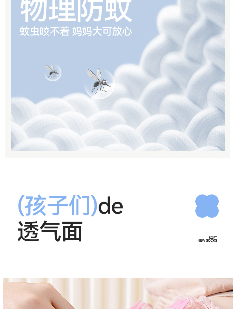 아기의 긴 양말 봄과 여름 클래스 편안한 부적합한 뼈없는 재봉 헤드 충격 방지 노크 통기성 메쉬 방지 모기 양말