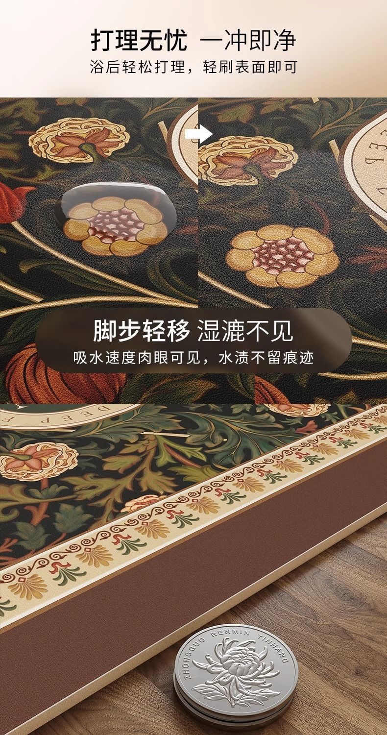 가벼운 고급 하이 엔드 화장실 문 미끄럼 방지 바닥 매트 복고풍 미국 스타일 Diatom 진흙 흡수성 빠른 건조 화장실 발 매트스토어 가기