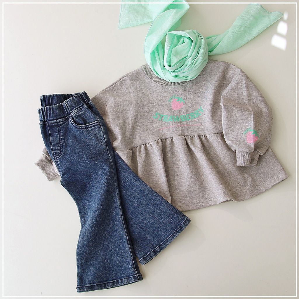 봄 가을 소녀 어린이 의류 원피스 아기의 서양식 어린이 성격 유행 한국 스타일 딸기 편지 바느질 귀여운 운동복 스커트스토어 가기